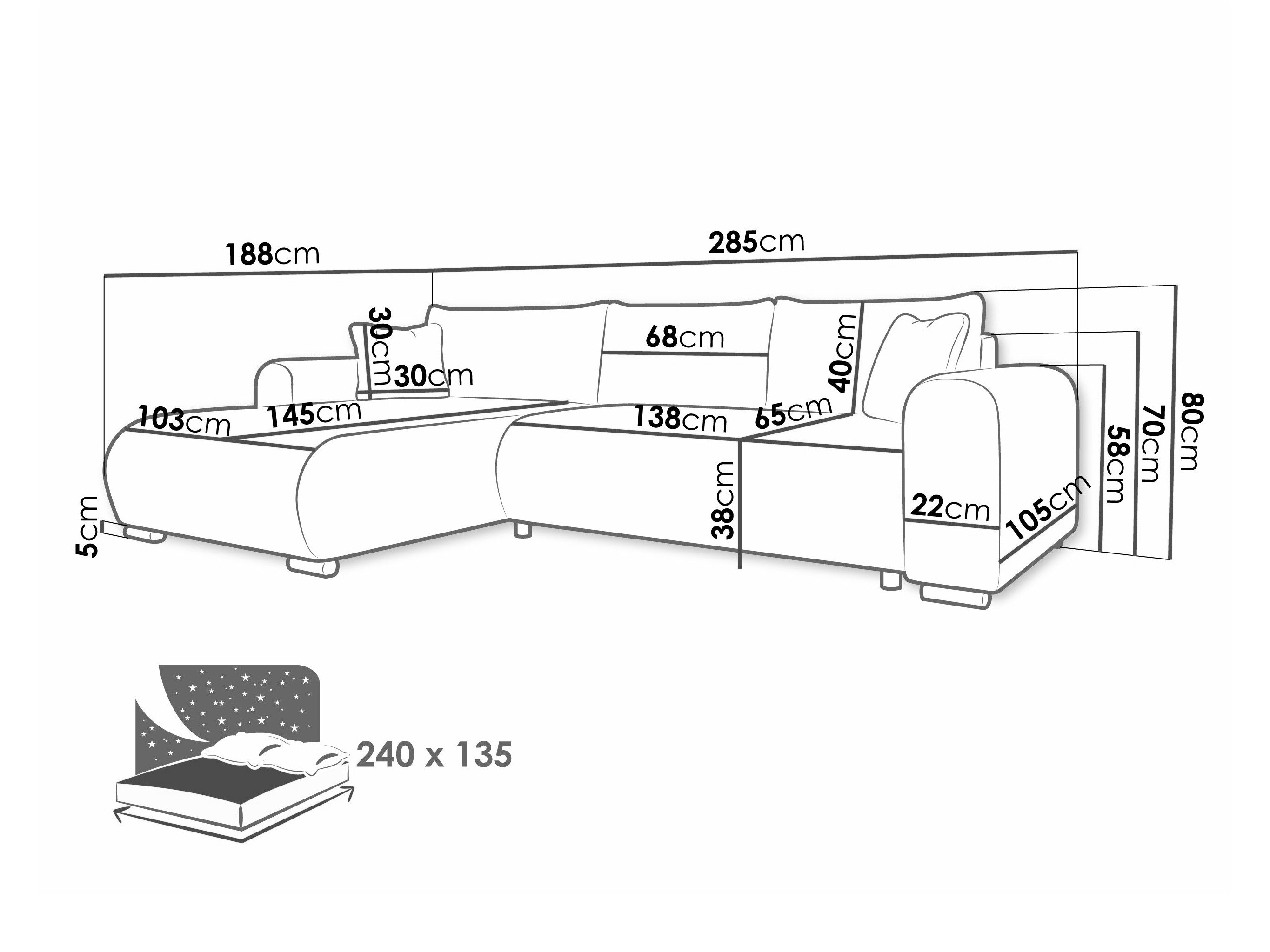Sengekasse dimensioner:
