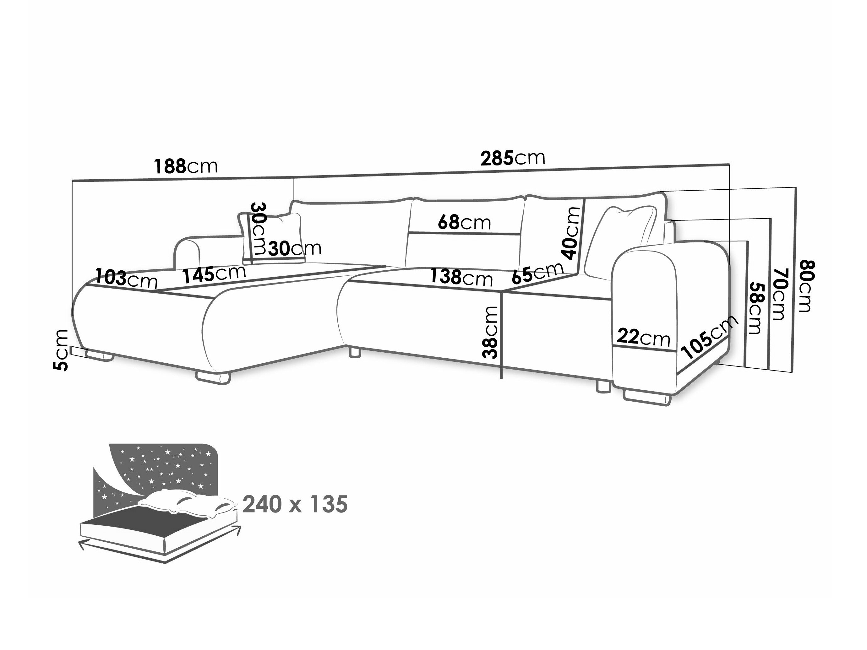 Sengekasse dimensioner:
