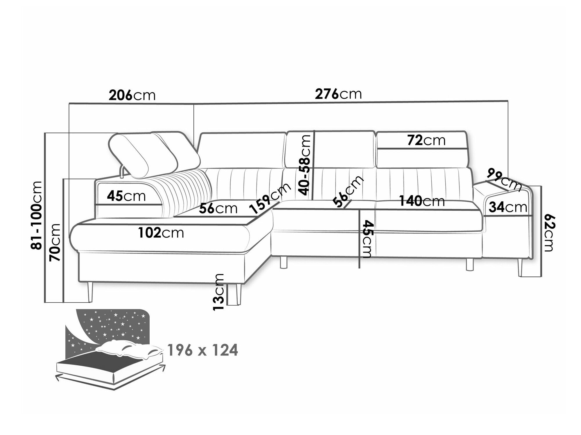 Sengekasse dimensioner: