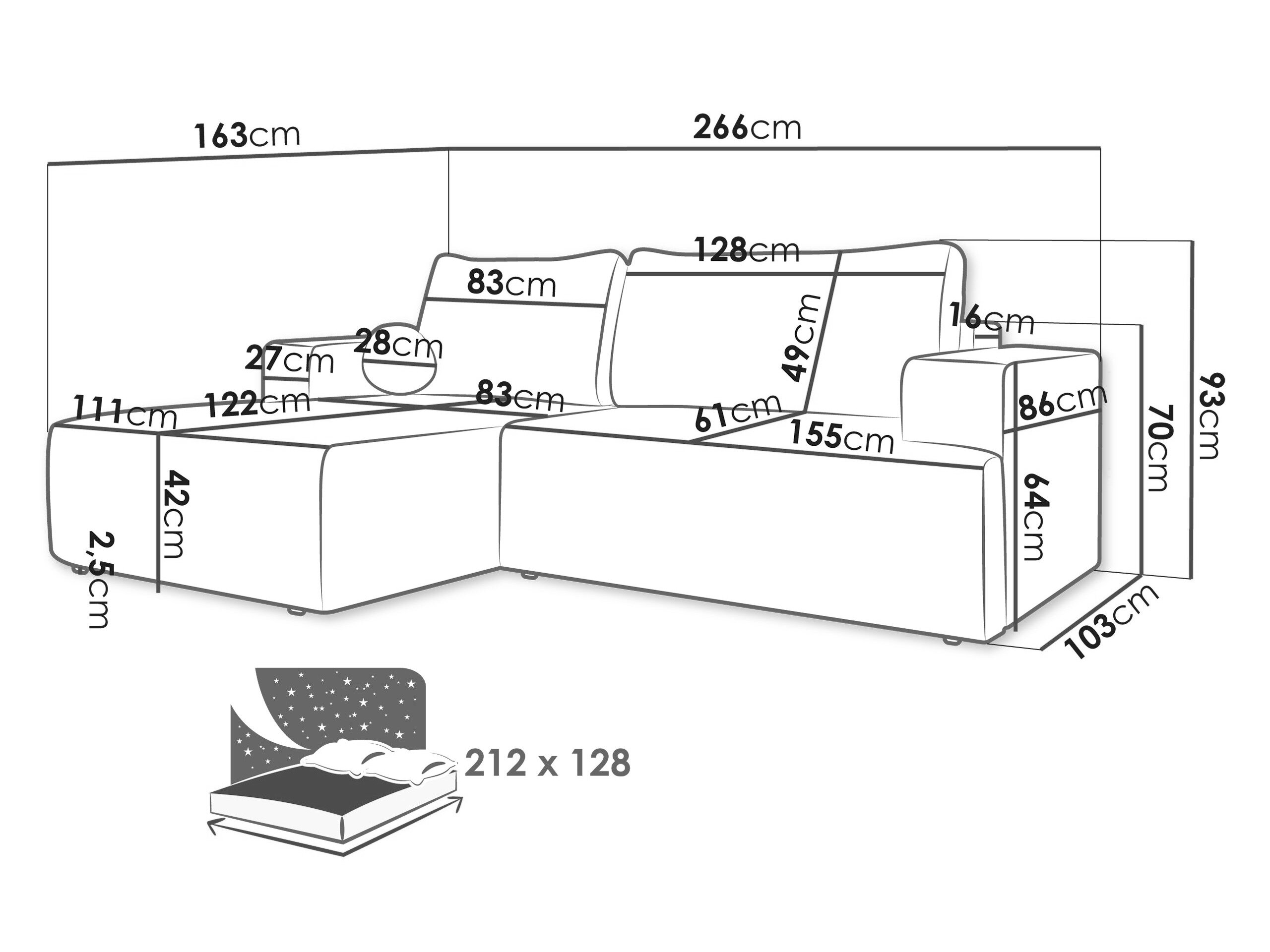 Sengekasse dimensioner: