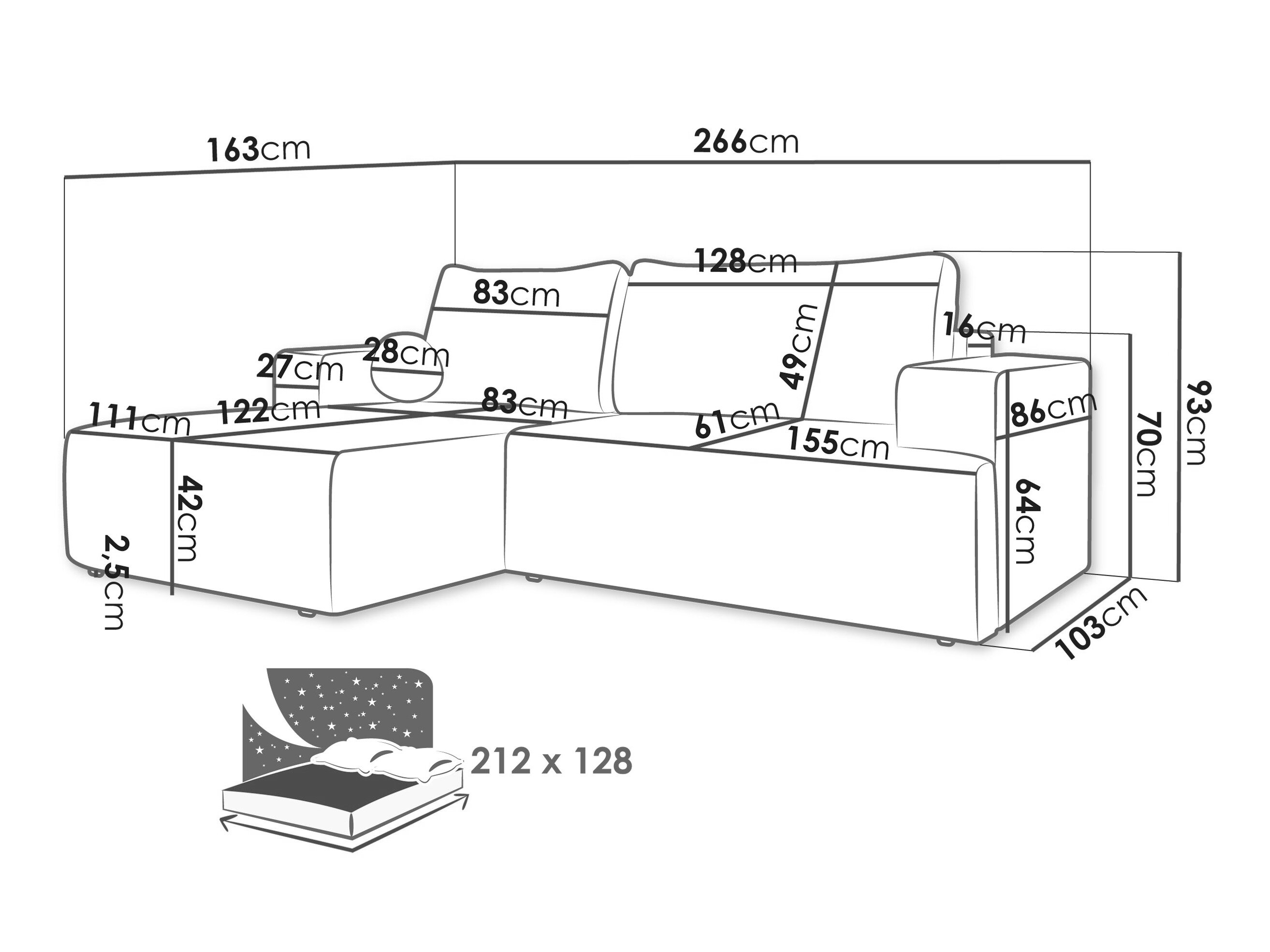 Sengekasse dimensioner:
