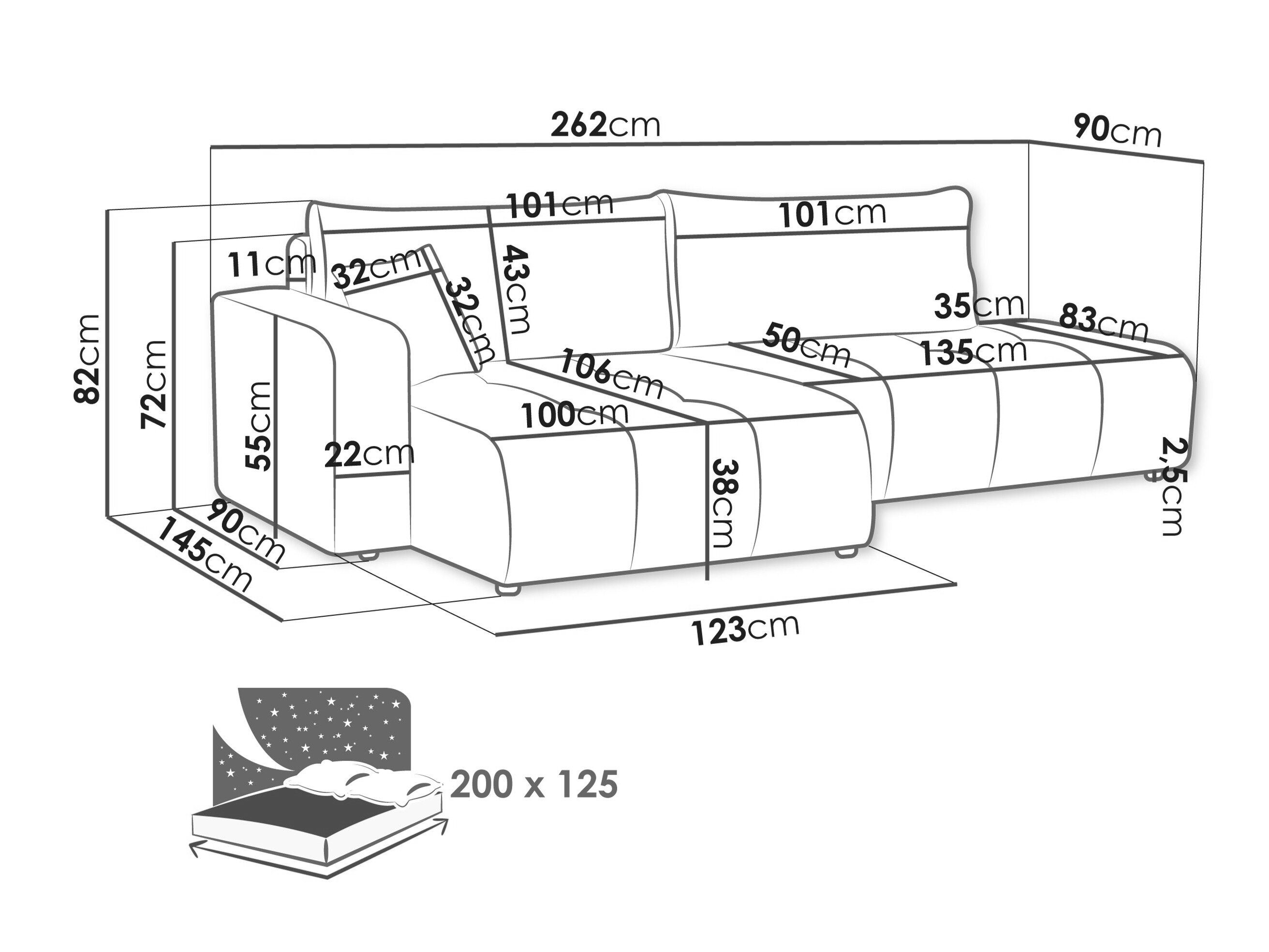 Længde på soveområde: