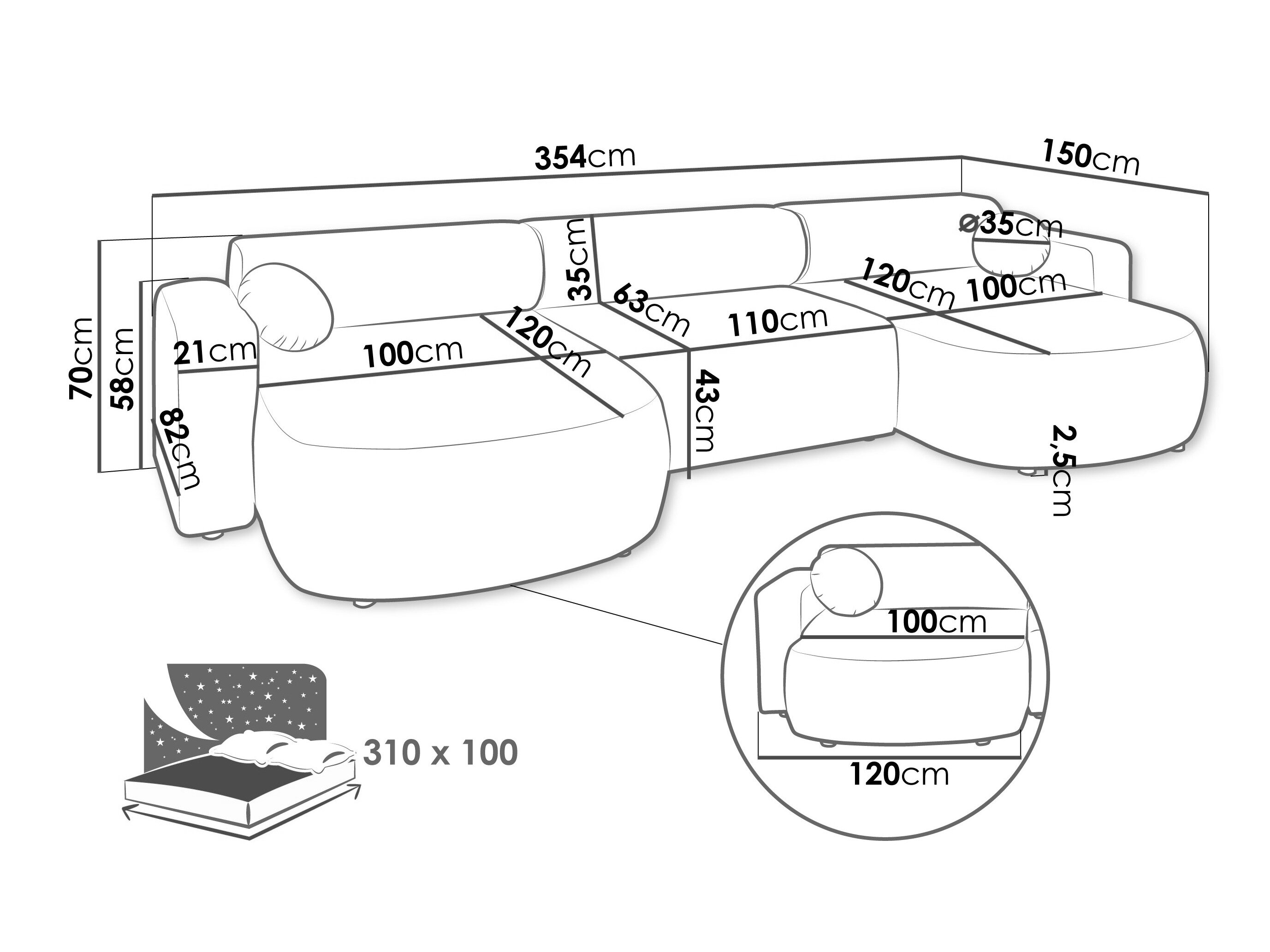 70 cm  354 cm  150 cm
