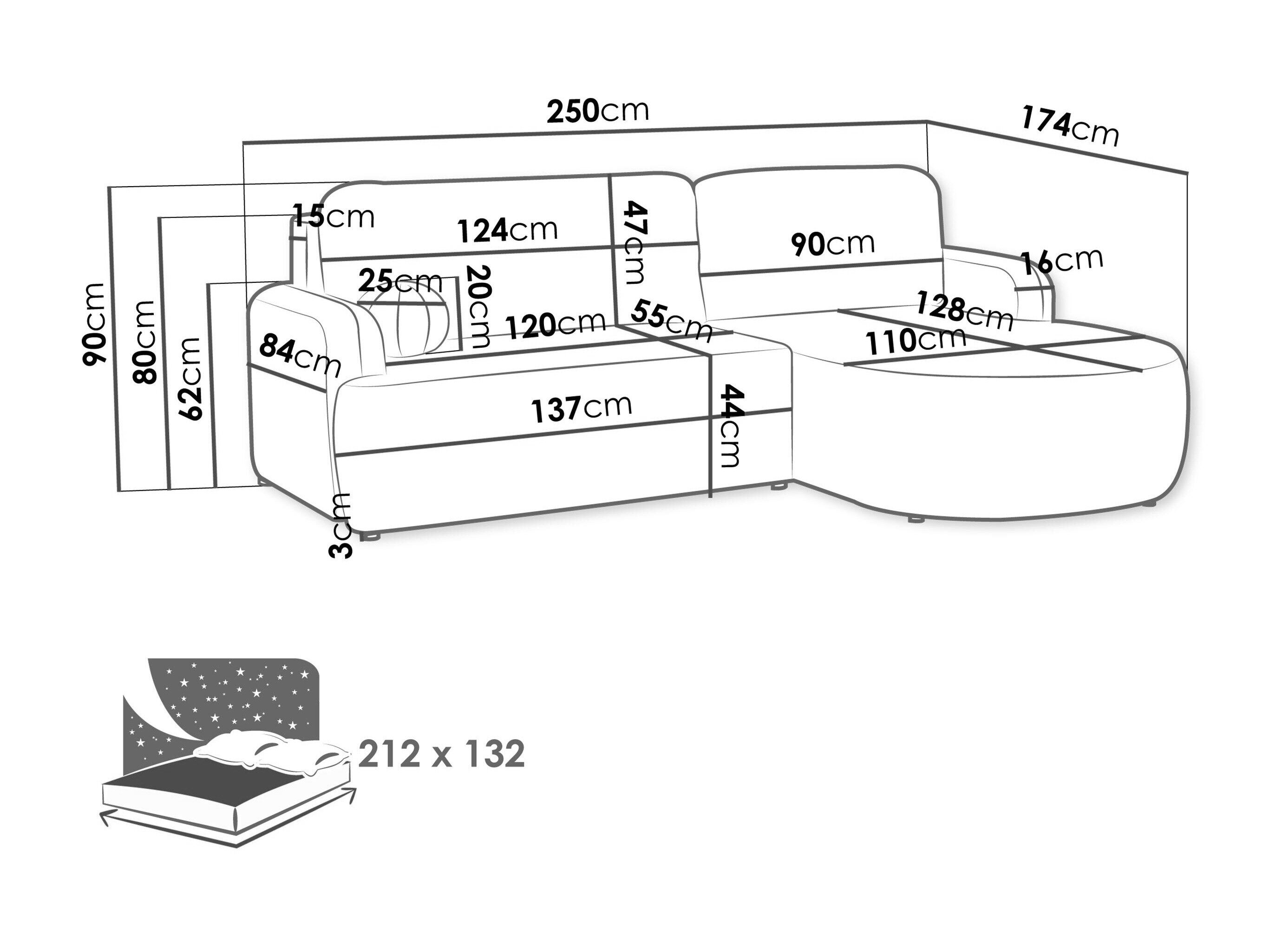 Når du ser på sofaen forfra, vil den forlængede del af højre-varianten være på din højre side. Den valgte hjørnevariant bør forbedre rummets flow og gøre det let at bevæge sig rundt i rummet.