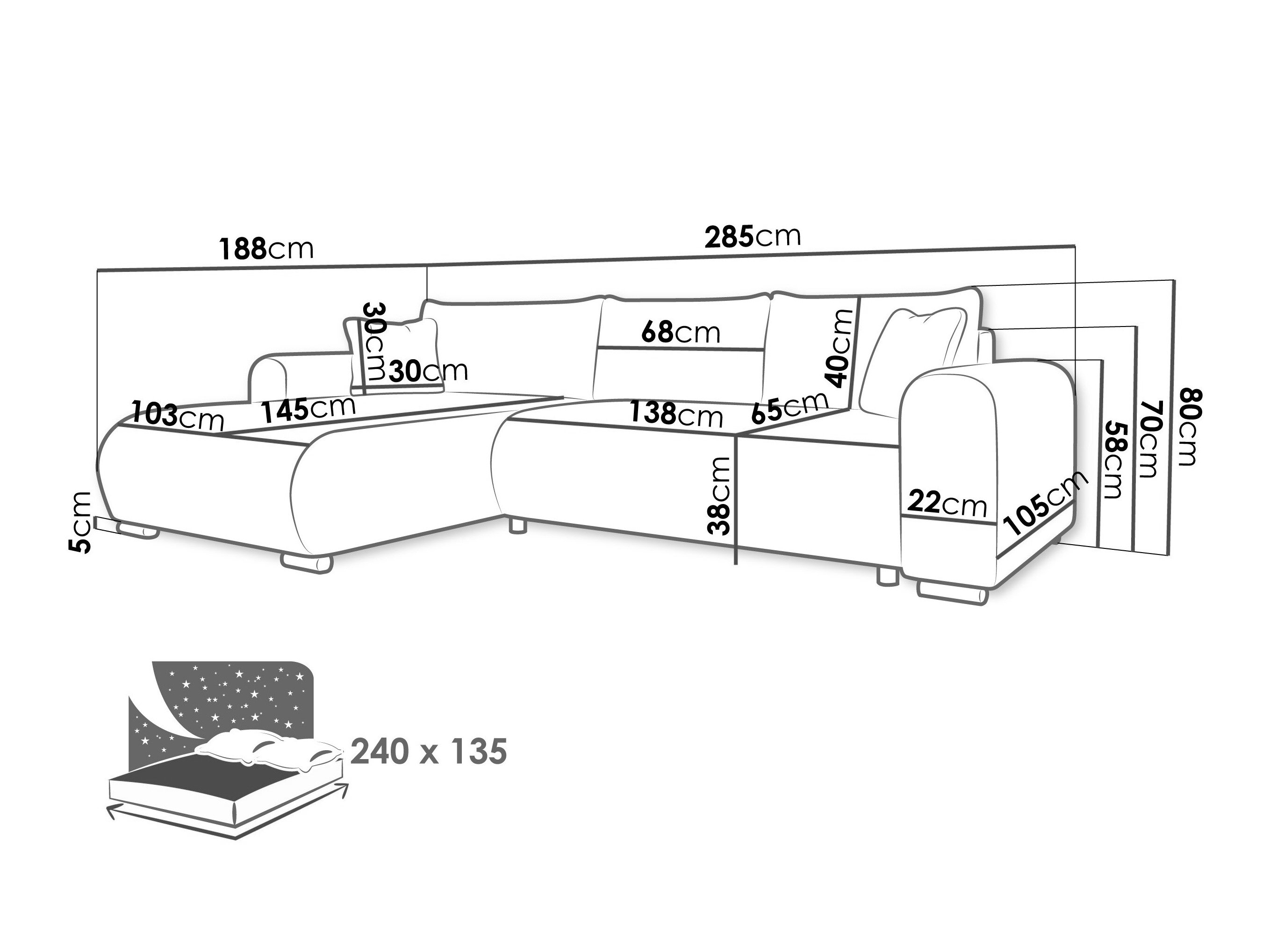Sengekasse dimensioner:
