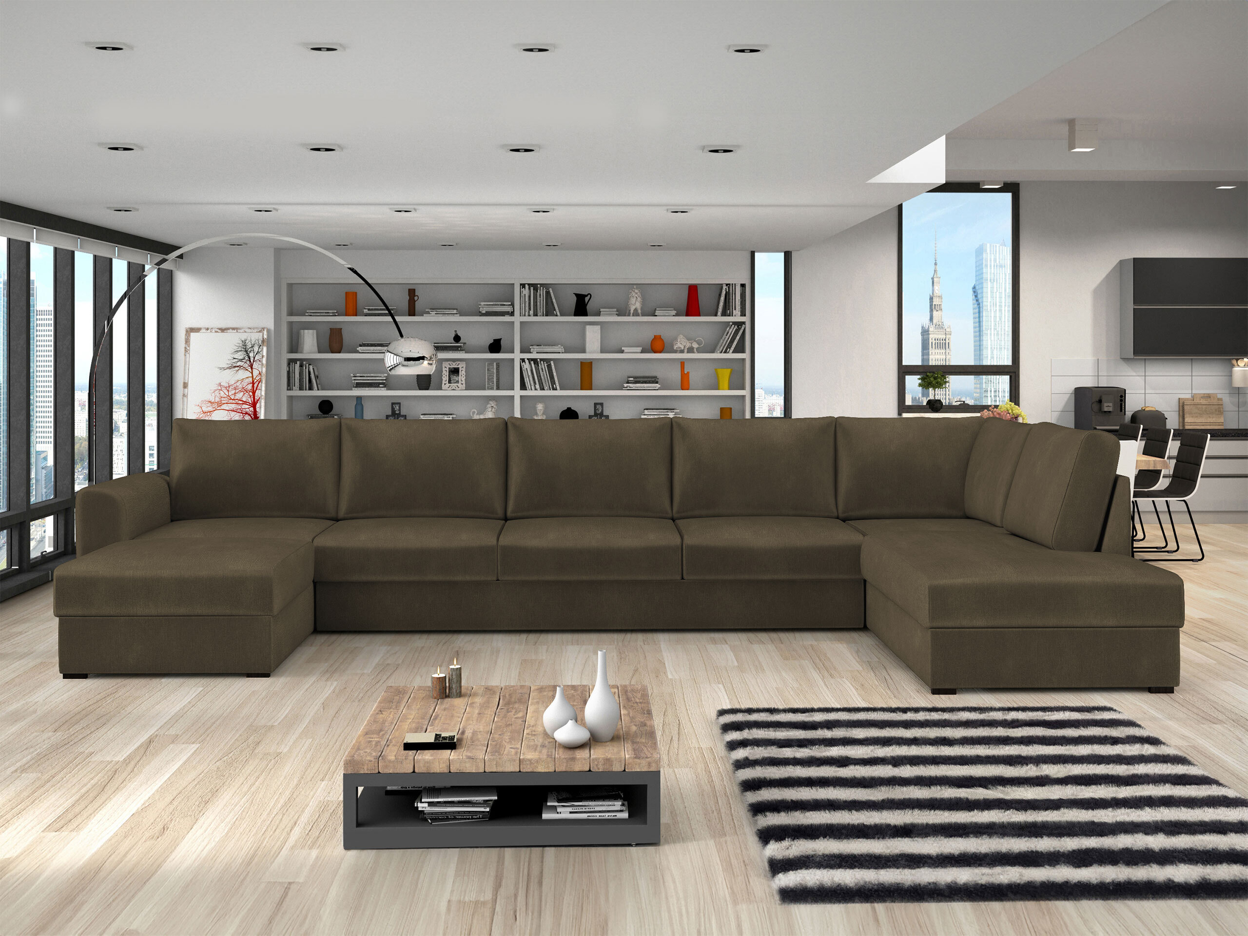 Stoffet på bagsiden af møblet er ikke anderledes end stoffet på hovedmøblet. Du kan placere møbler med denne funktion midt i rummet.