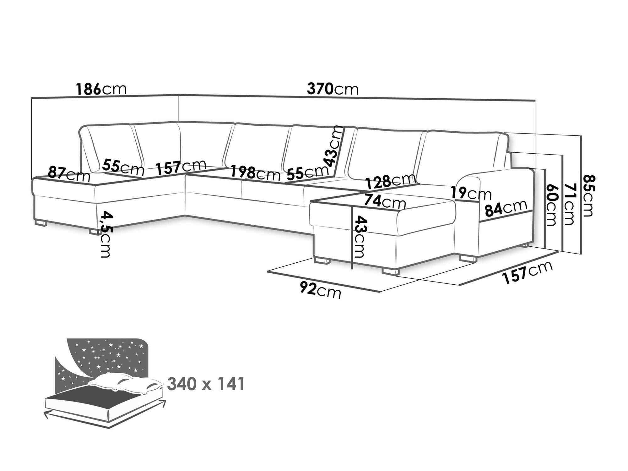Sengekasse dimensioner: