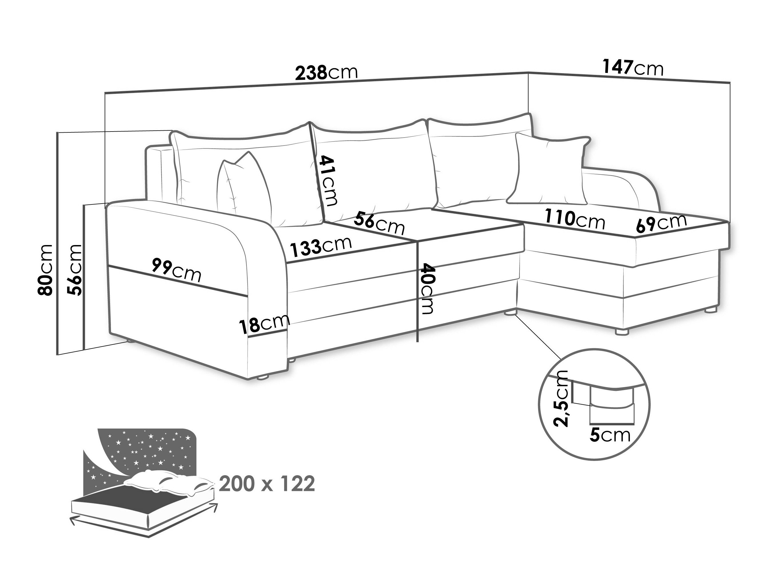 Sengekasse dimensioner: