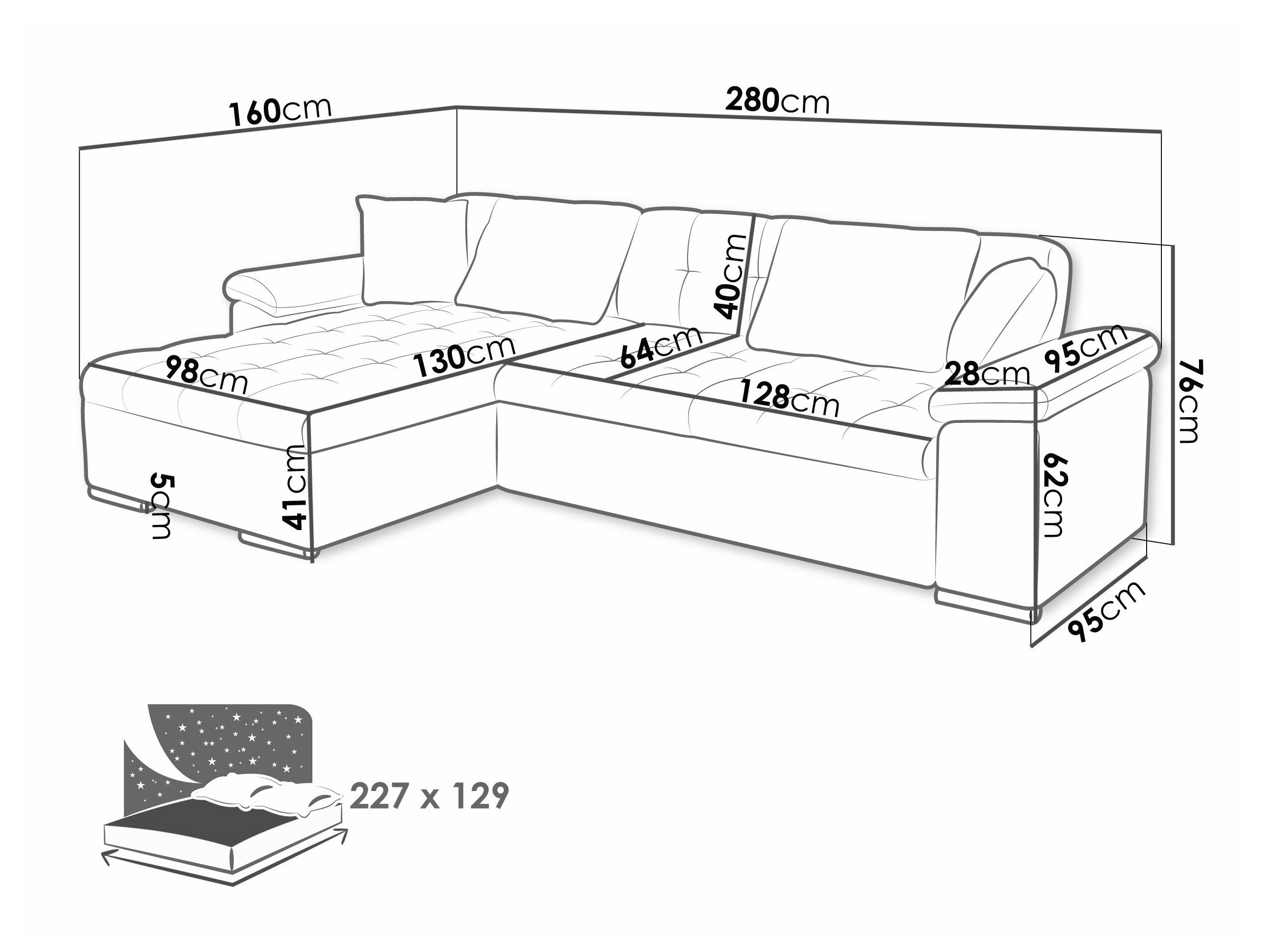 Sengekasse dimensioner: