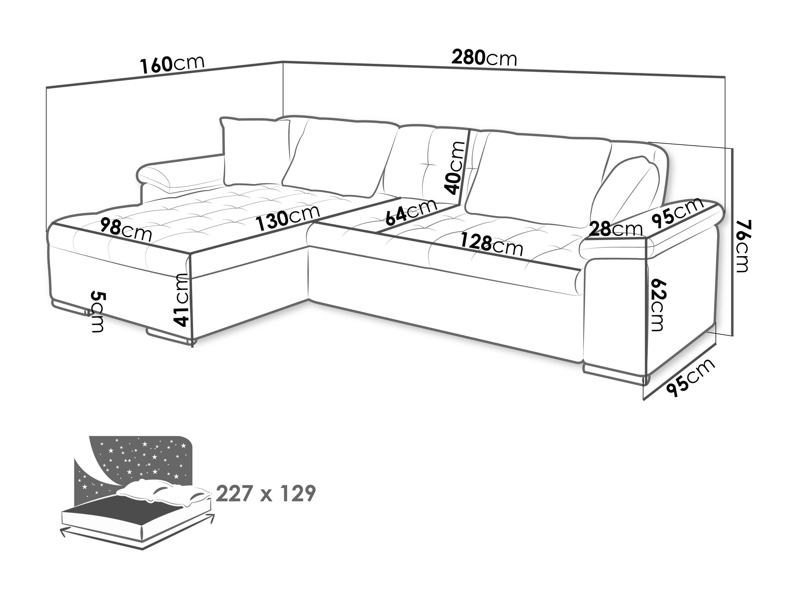 Sengekasse dimensioner: