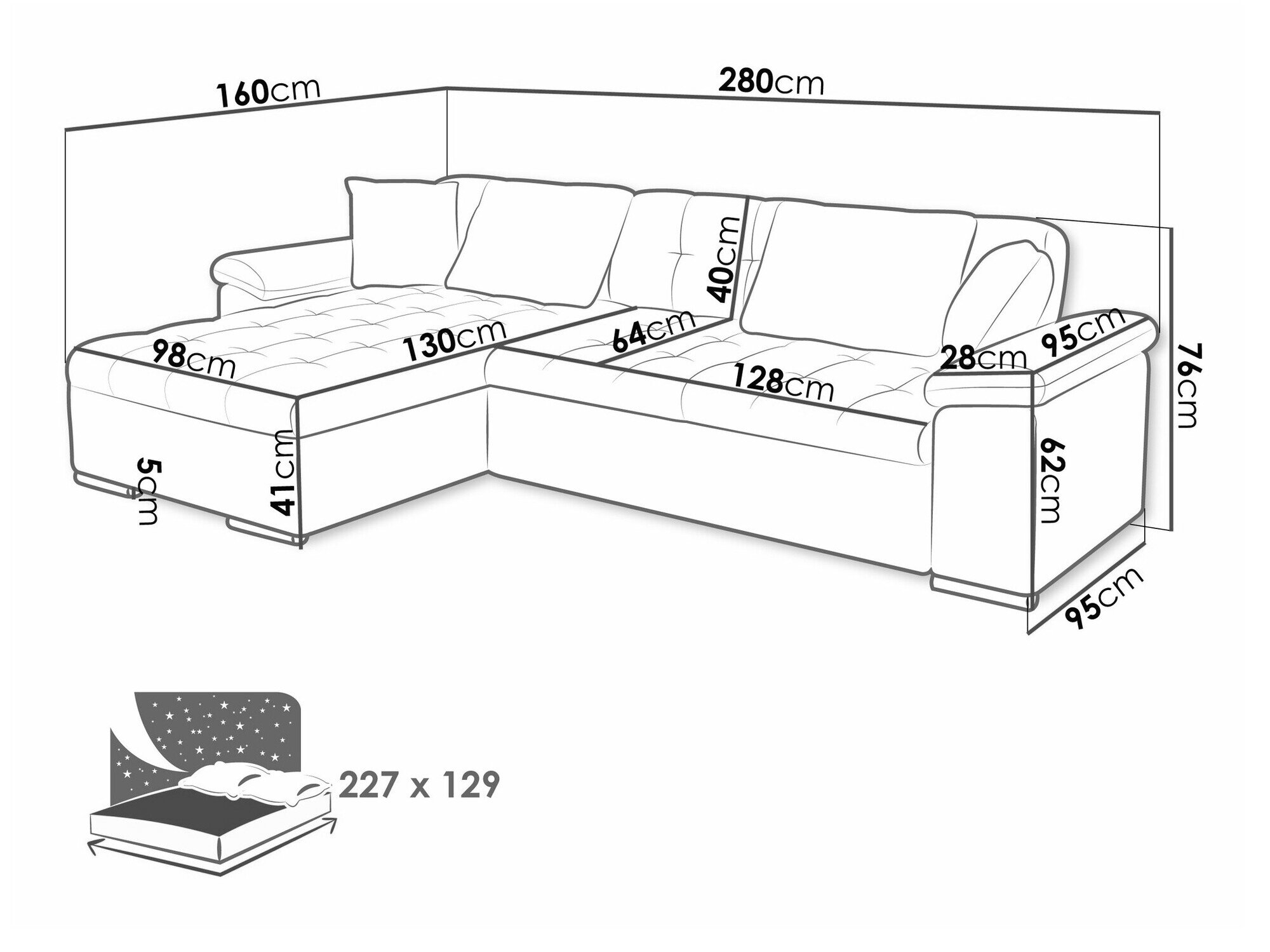 Sengekasse dimensioner: