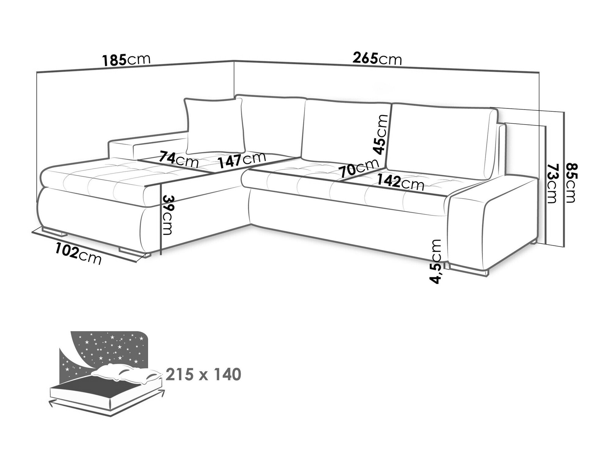 Sengekasse dimensioner: