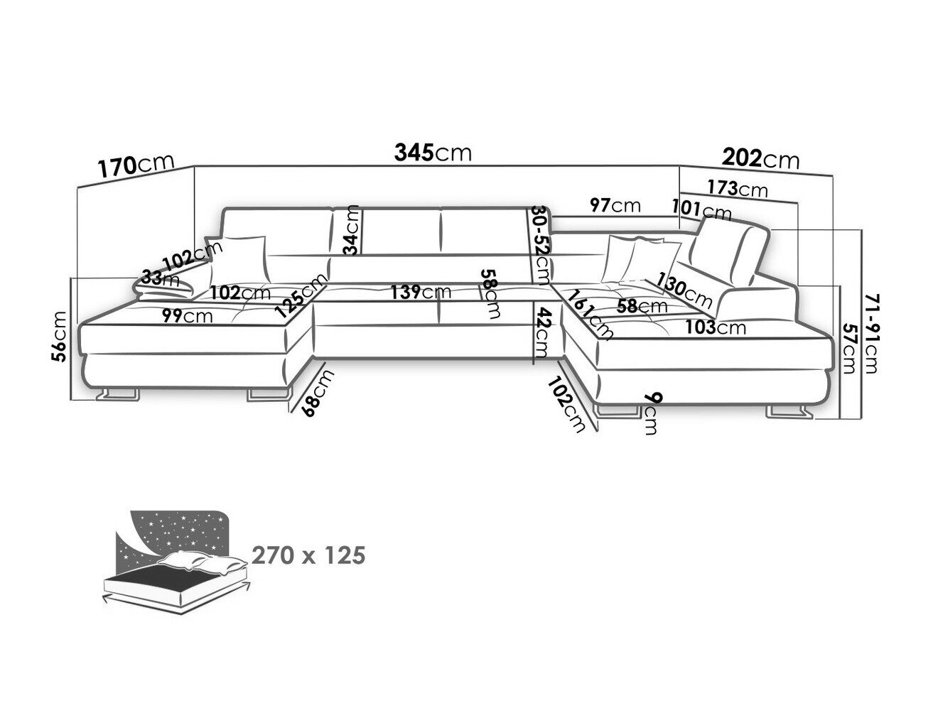 71 cm  345 cm  202 cm