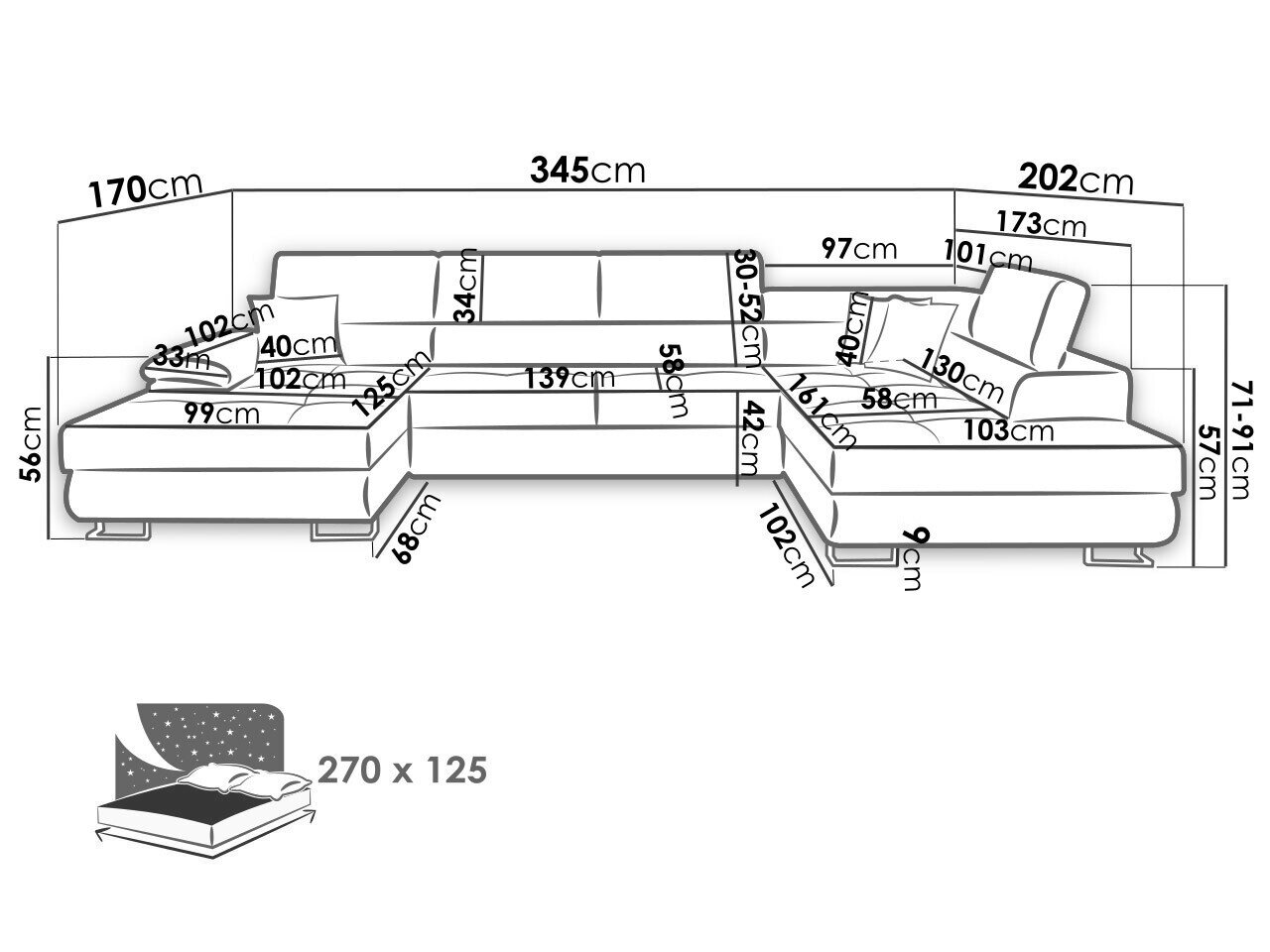 Sengekasse dimensioner: