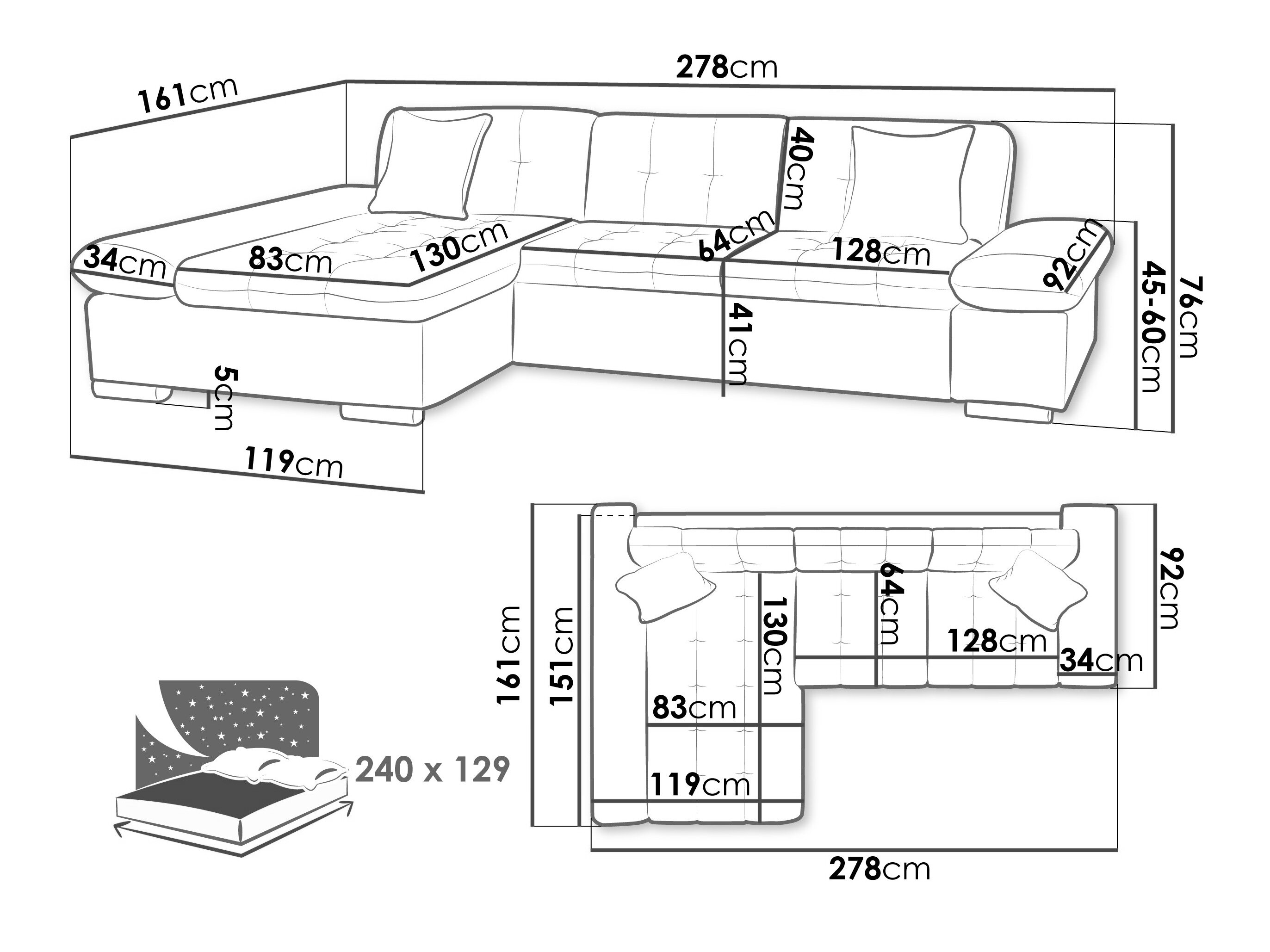 76 cm  278 cm  161 cm