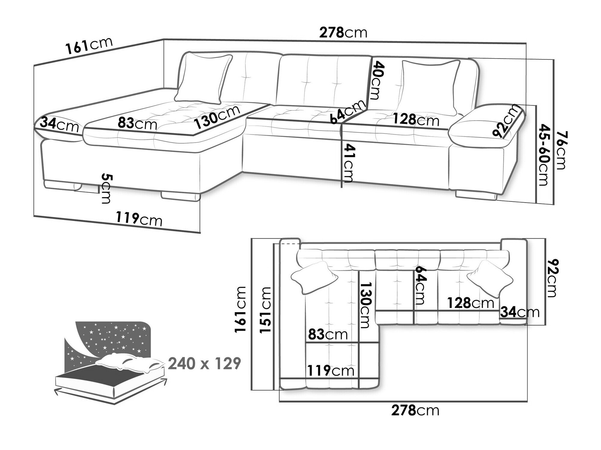 Sengekasse dimensioner: