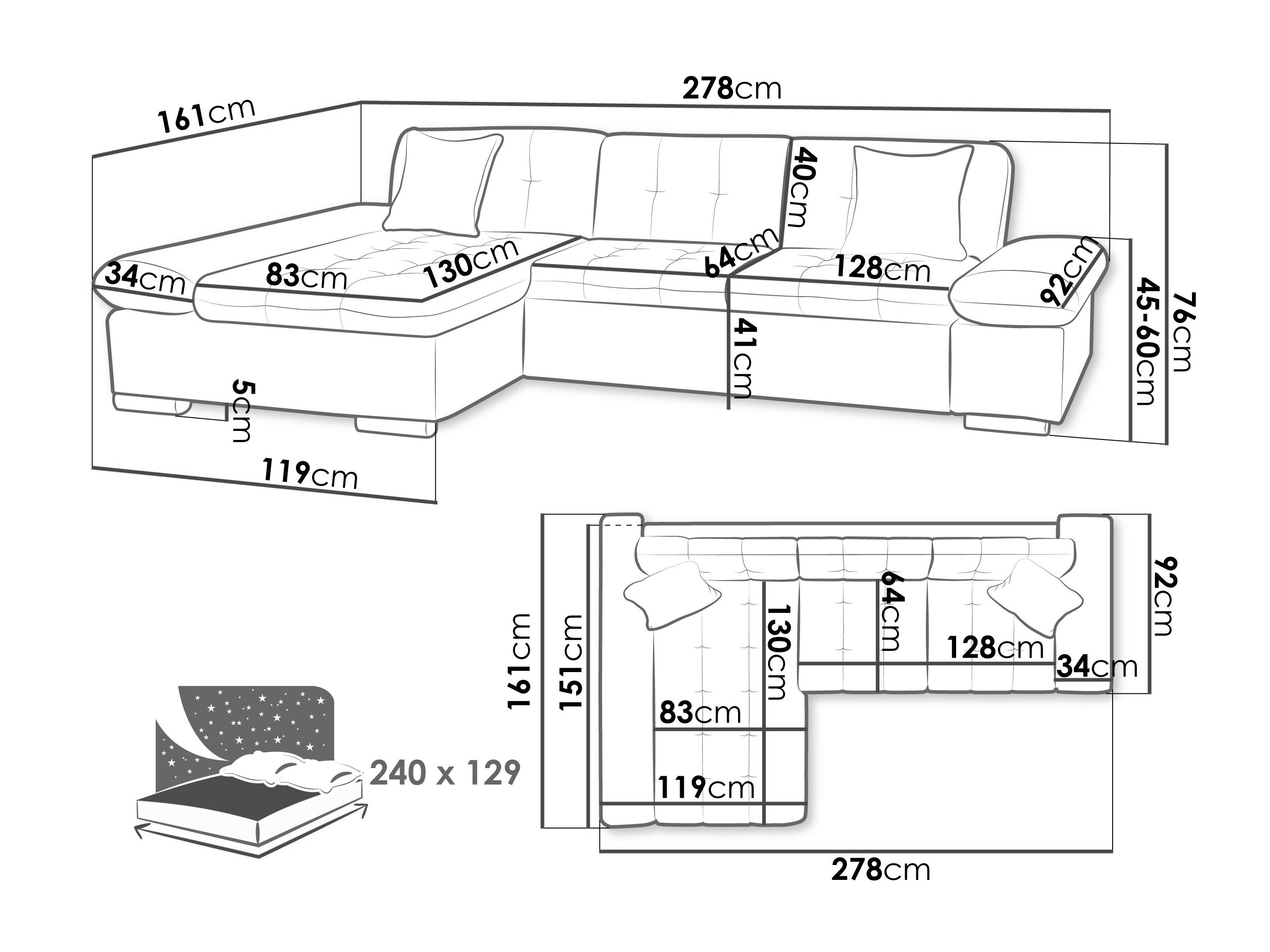 Sengekasse dimensioner: