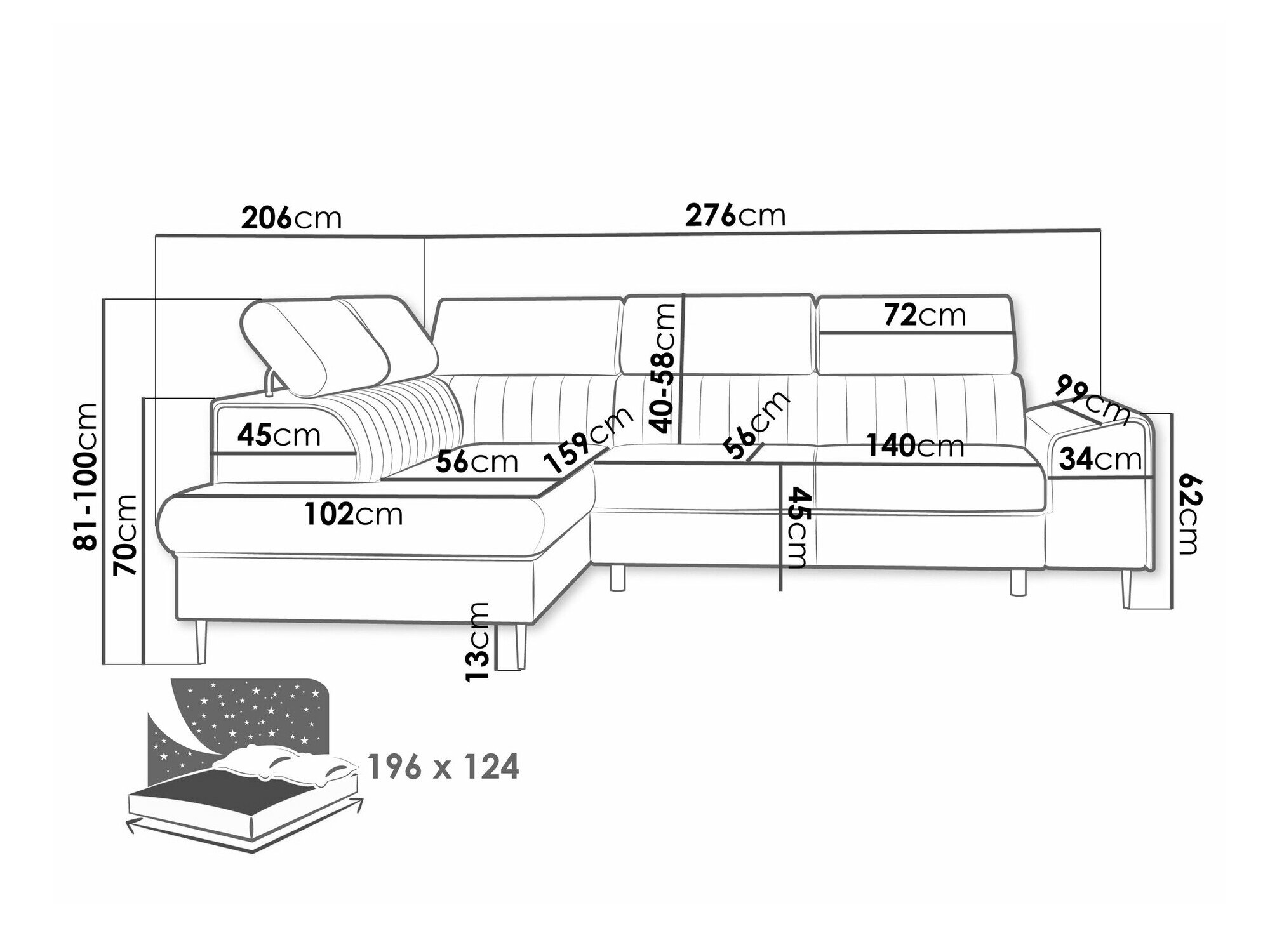 81 cm  276 cm  206 cm