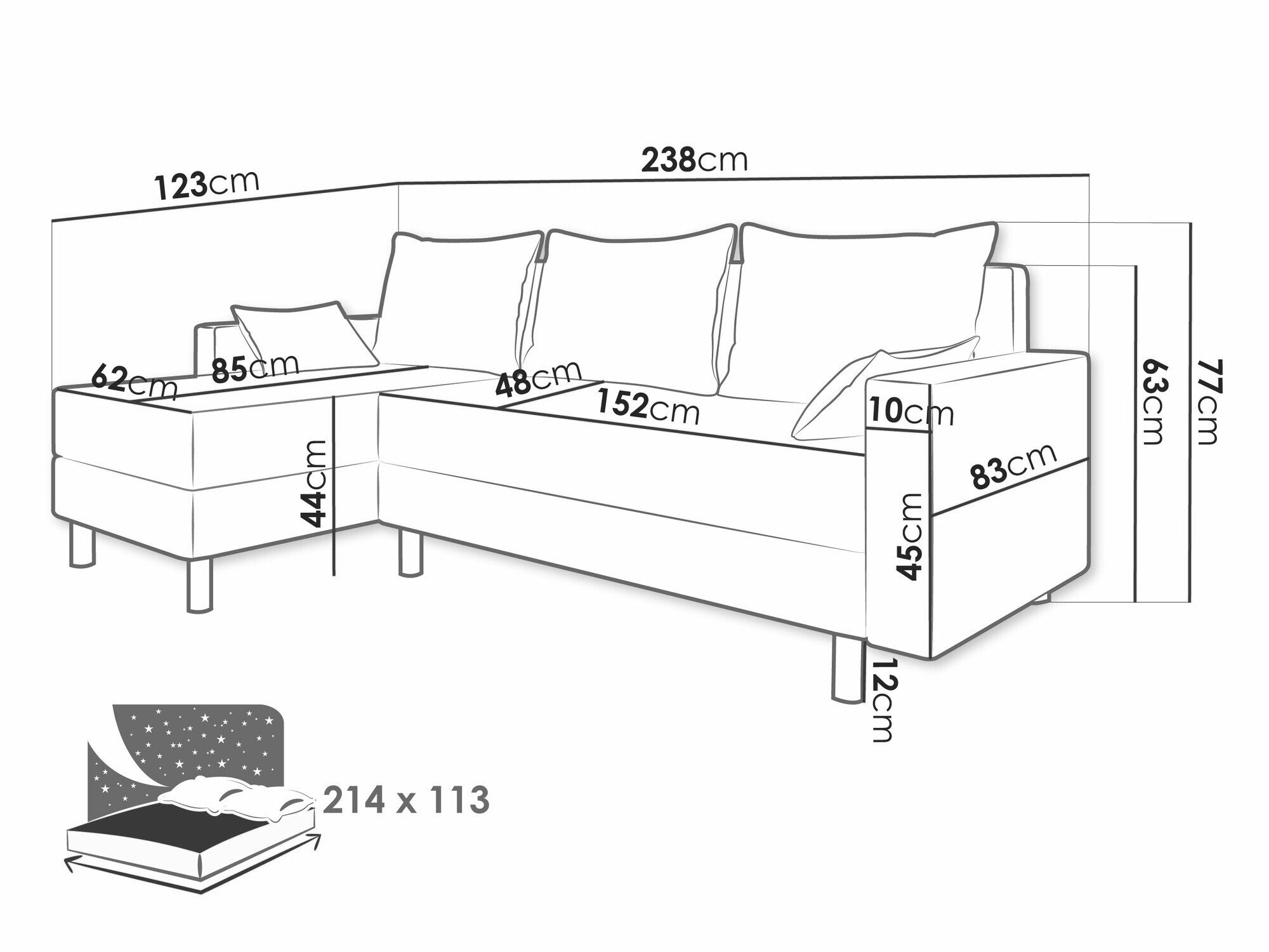 Sengekasse dimensioner:
