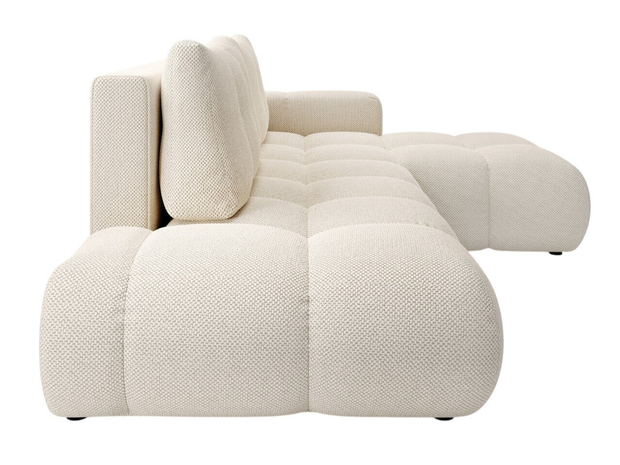 Når du ser på sofaen forfra, vil den forlængede del af højre-varianten være på din højre side. Den valgte hjørnevariant bør forbedre rummets flow og gøre det let at bevæge sig rundt i rummet.
