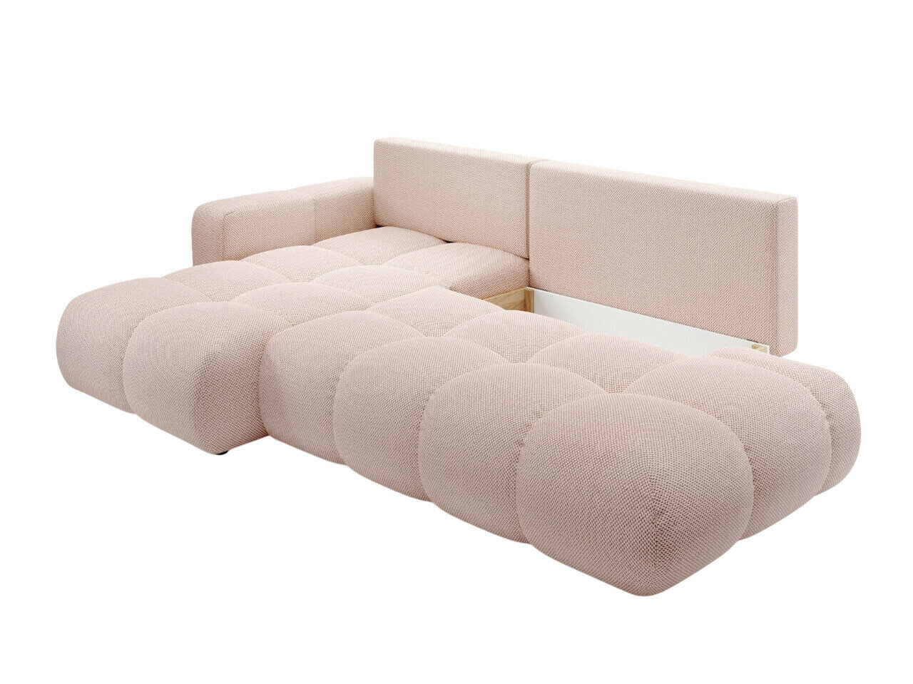 Når du ser på sofaen forfra, vil den forlængede del af venstre-varianten være på din venstre side. Den valgte hjørnevariant bør forbedre rummets flow og gøre det let at bevæge sig rundt i rummet.
