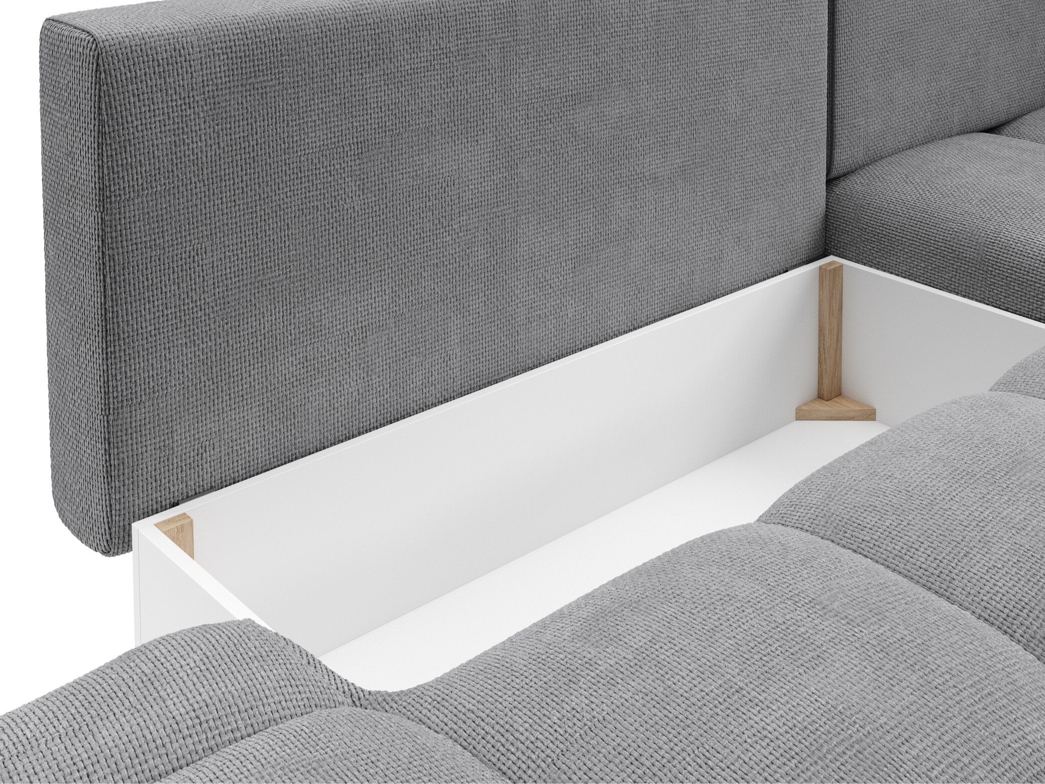 Når du ser på sofaen forfra, vil den forlængede del af højre-varianten være på din højre side. Den valgte hjørnevariant bør forbedre rummets flow og gøre det let at bevæge sig rundt i rummet.