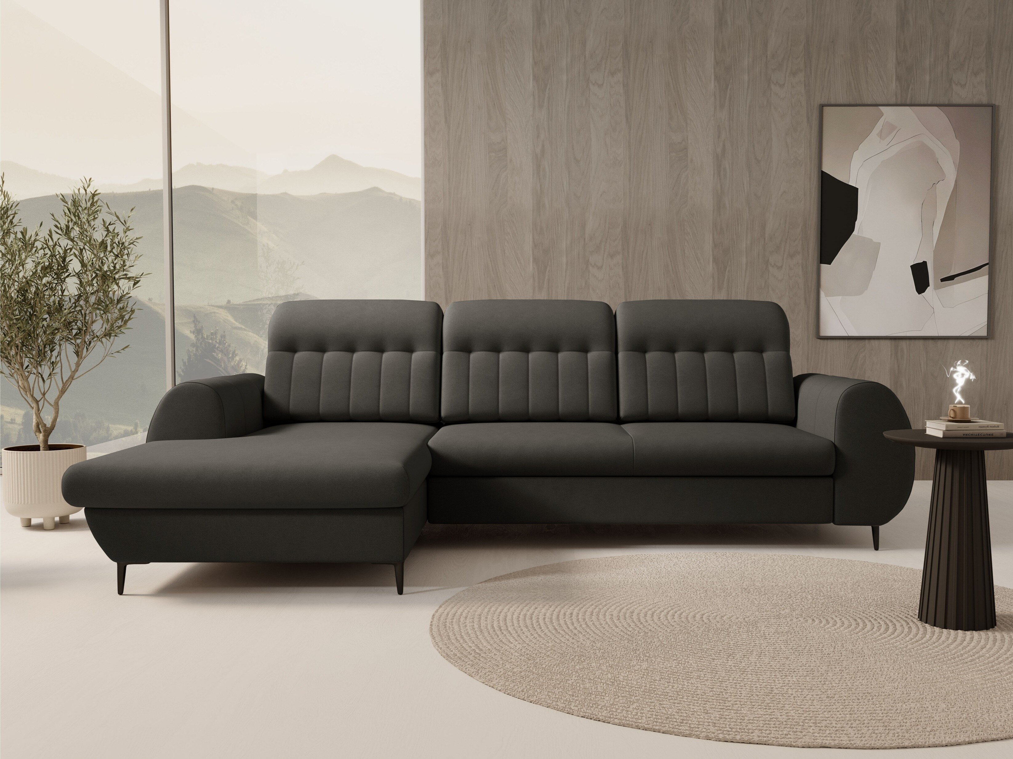 Når du ser på sofaen forfra, vil den forlængede del af venstre-varianten være på din venstre side. Den valgte hjørnevariant bør forbedre rummets flow og gøre det let at bevæge sig rundt i rummet.