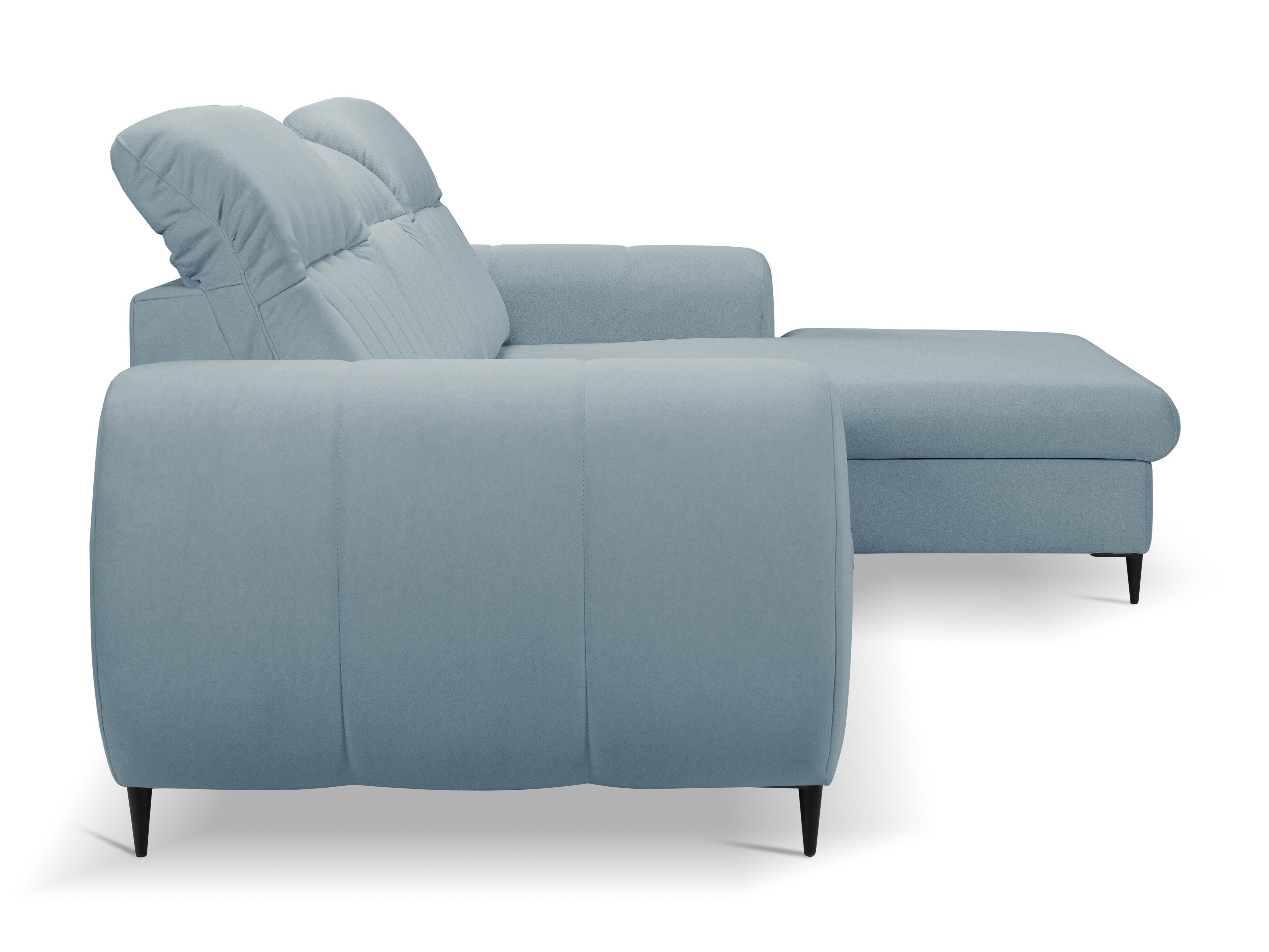 Når du ser på sofaen forfra, vil den forlængede del af højre-varianten være på din højre side. Den valgte hjørnevariant bør forbedre rummets flow og gøre det let at bevæge sig rundt i rummet.