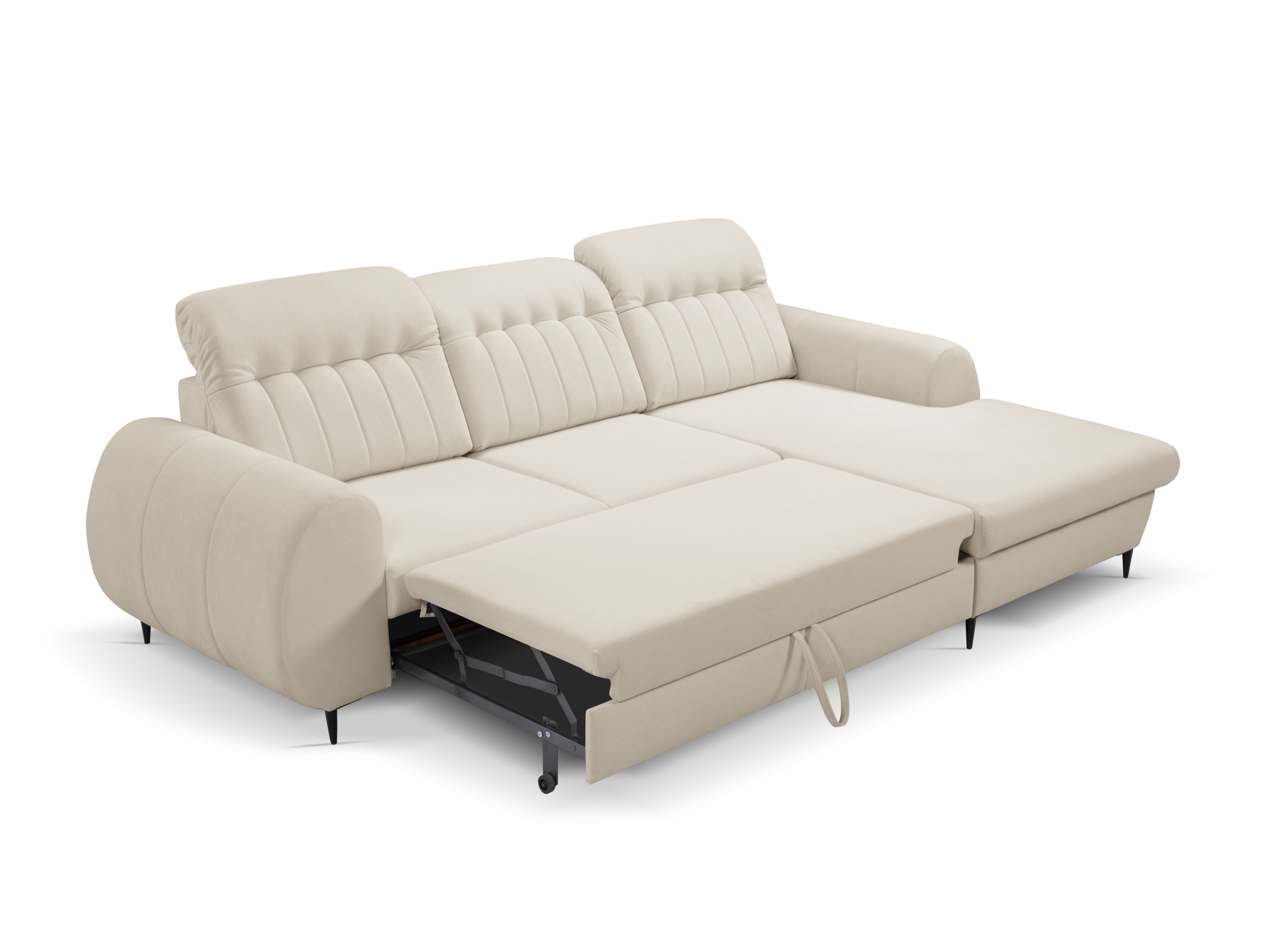 Det er en enkel og praktisk løsning, der giver dig mulighed for at forvandle møblerne uden den store indsats. Skuffen under sædet er usynlig, og når den trækkes ud, kan møblet blive et godt sted at sove. For at folde møblet ud skal du blot trække den nederste del mod dig og trække skuffen med den ekstra soveplads ud. Brug løkken til at løfte madrassen ind. Dette soveområde er lidt stivere end normalt. Takket være den bagerste del, der ikke bevæger sig, kan møbler med denne mekanisme placeres lige ved siden af væggen.