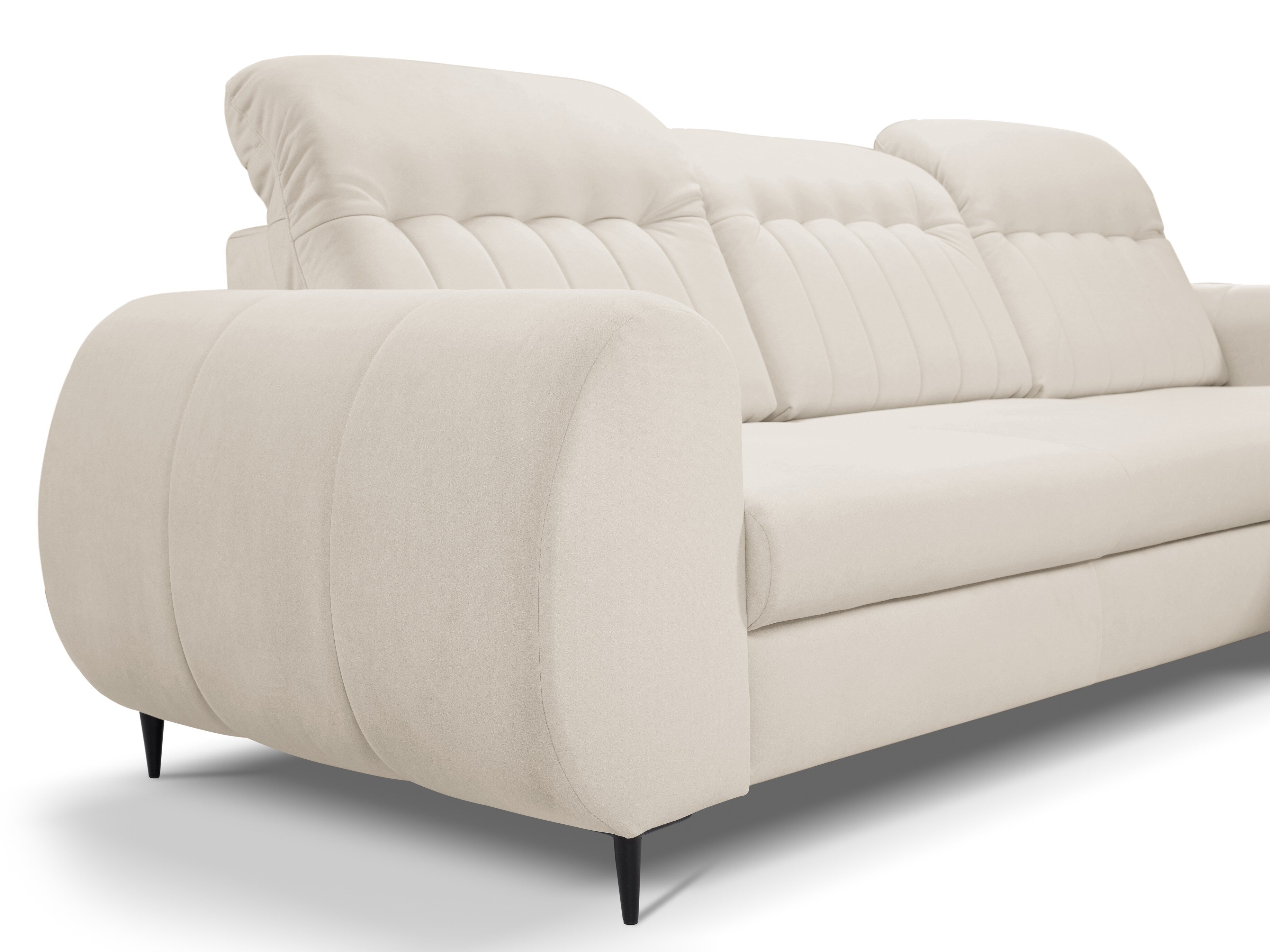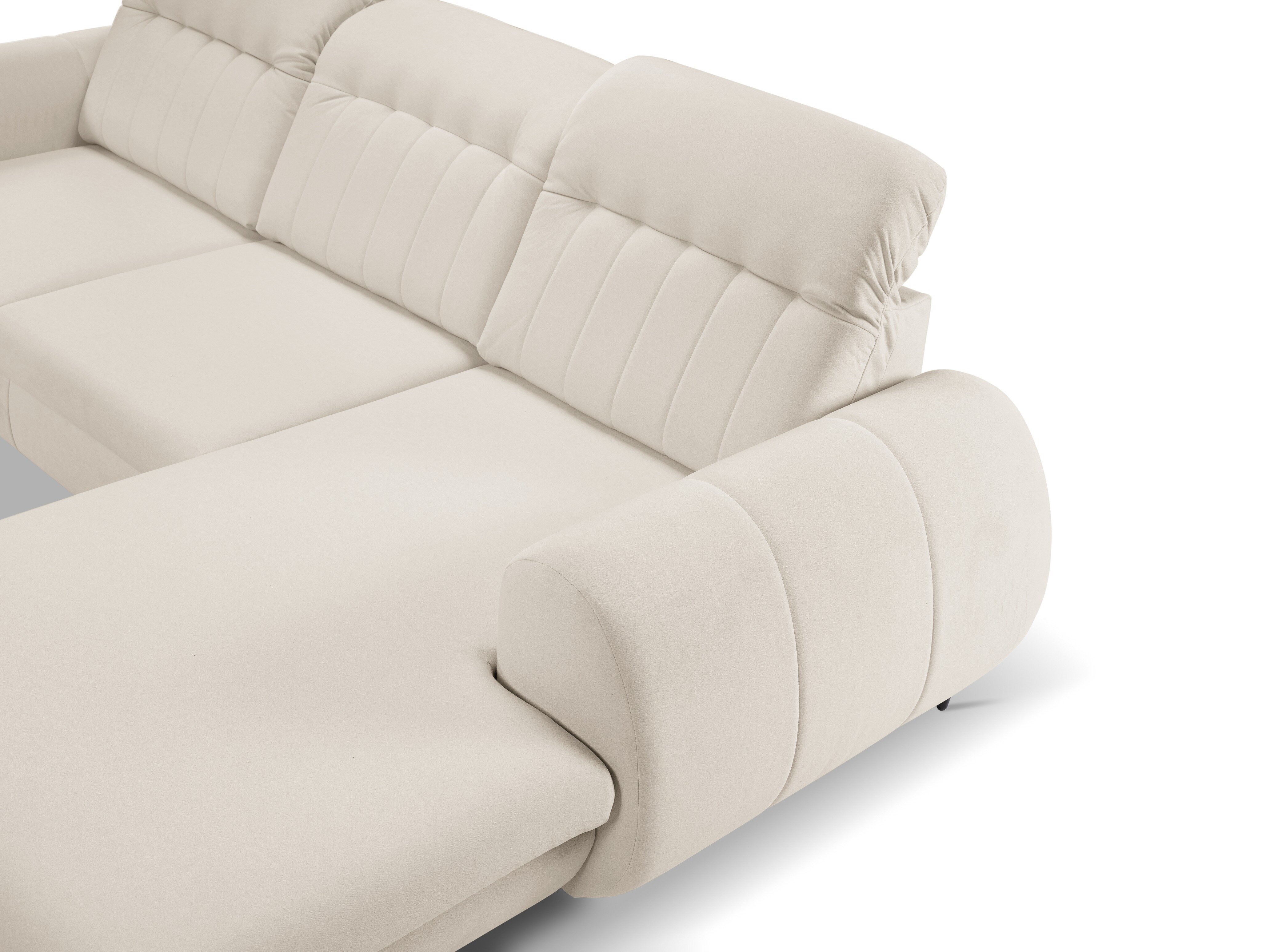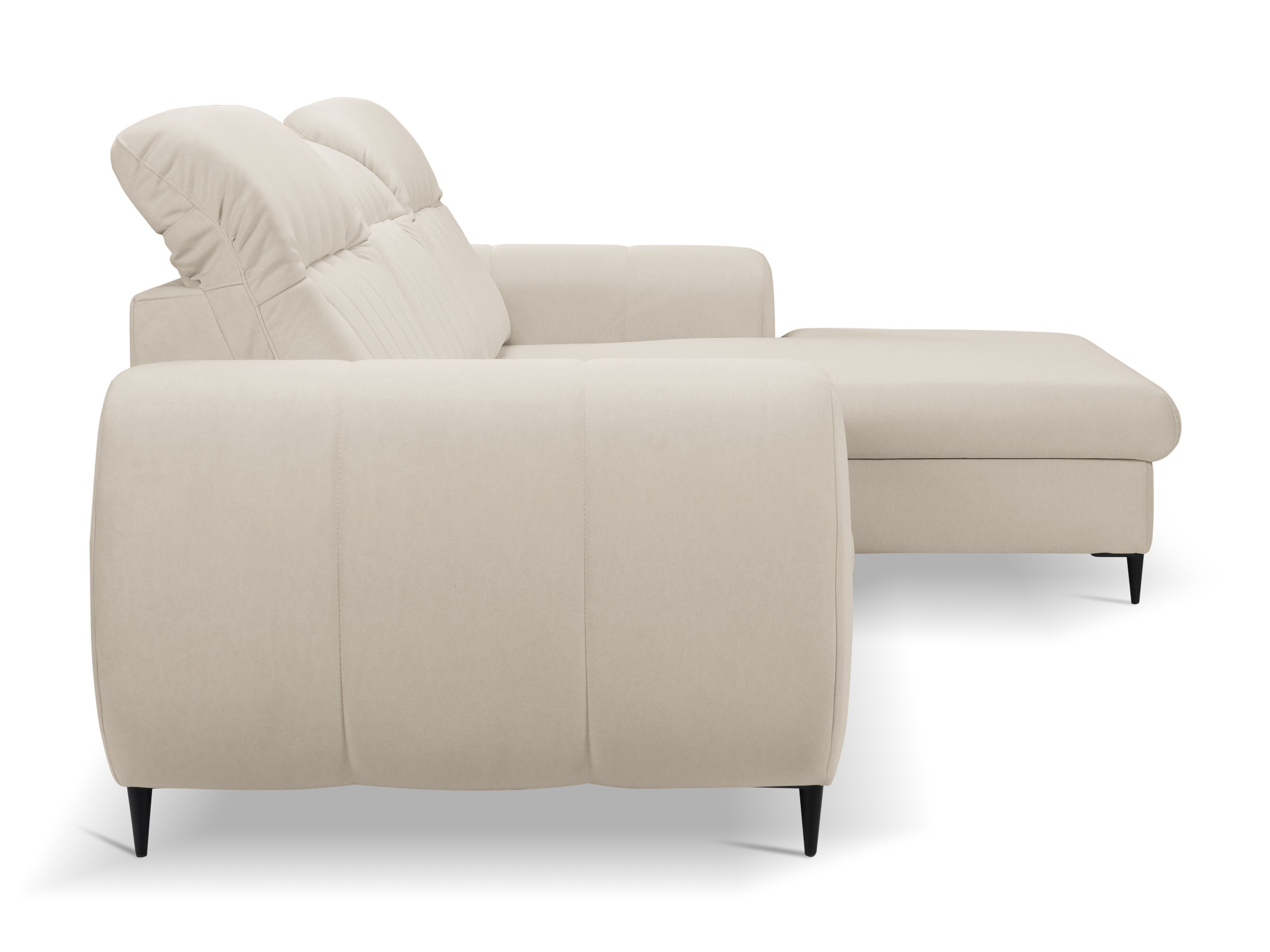 Når du ser på sofaen forfra, vil den forlængede del af højre-varianten være på din højre side. Den valgte hjørnevariant bør forbedre rummets flow og gøre det let at bevæge sig rundt i rummet.