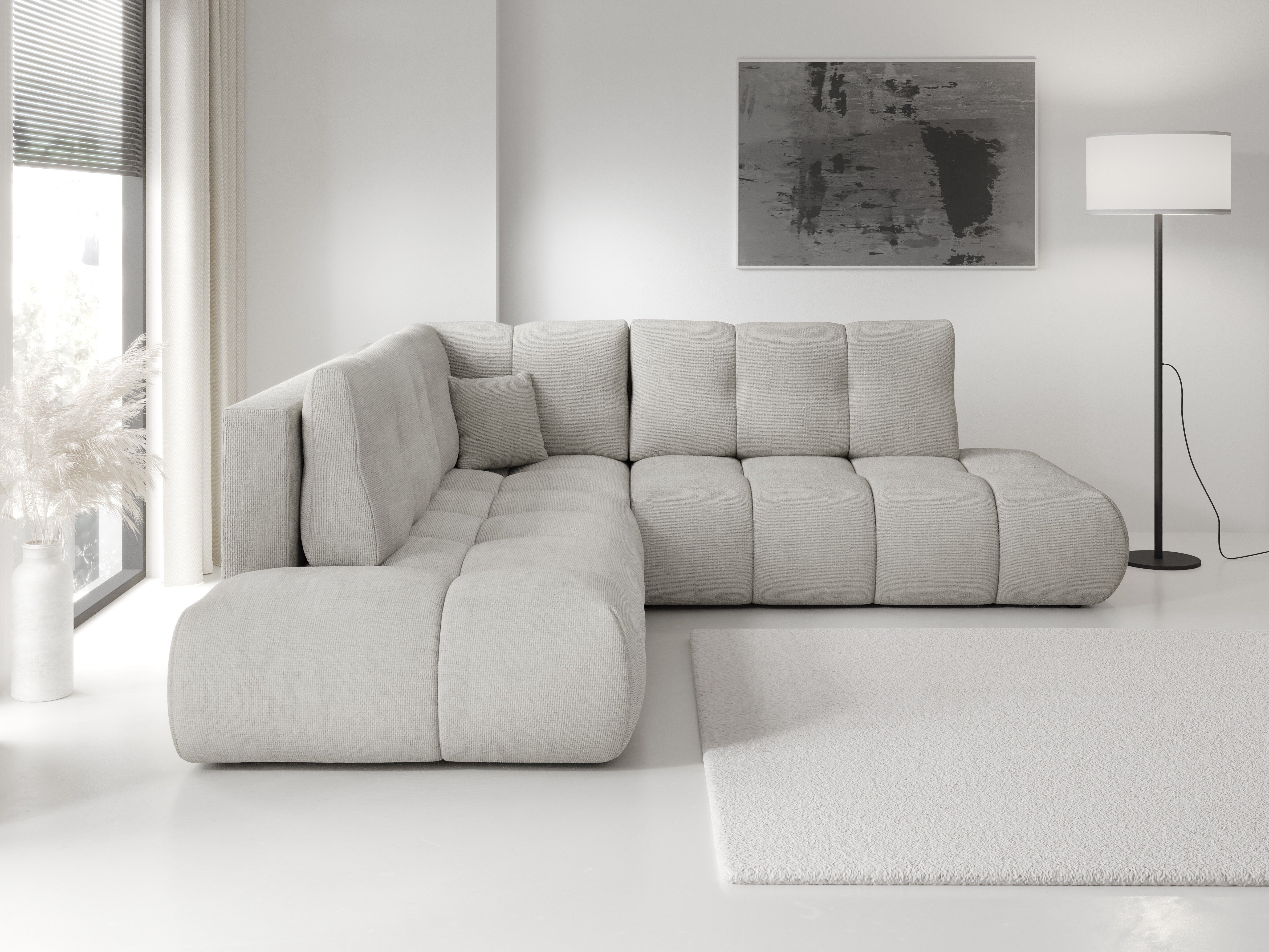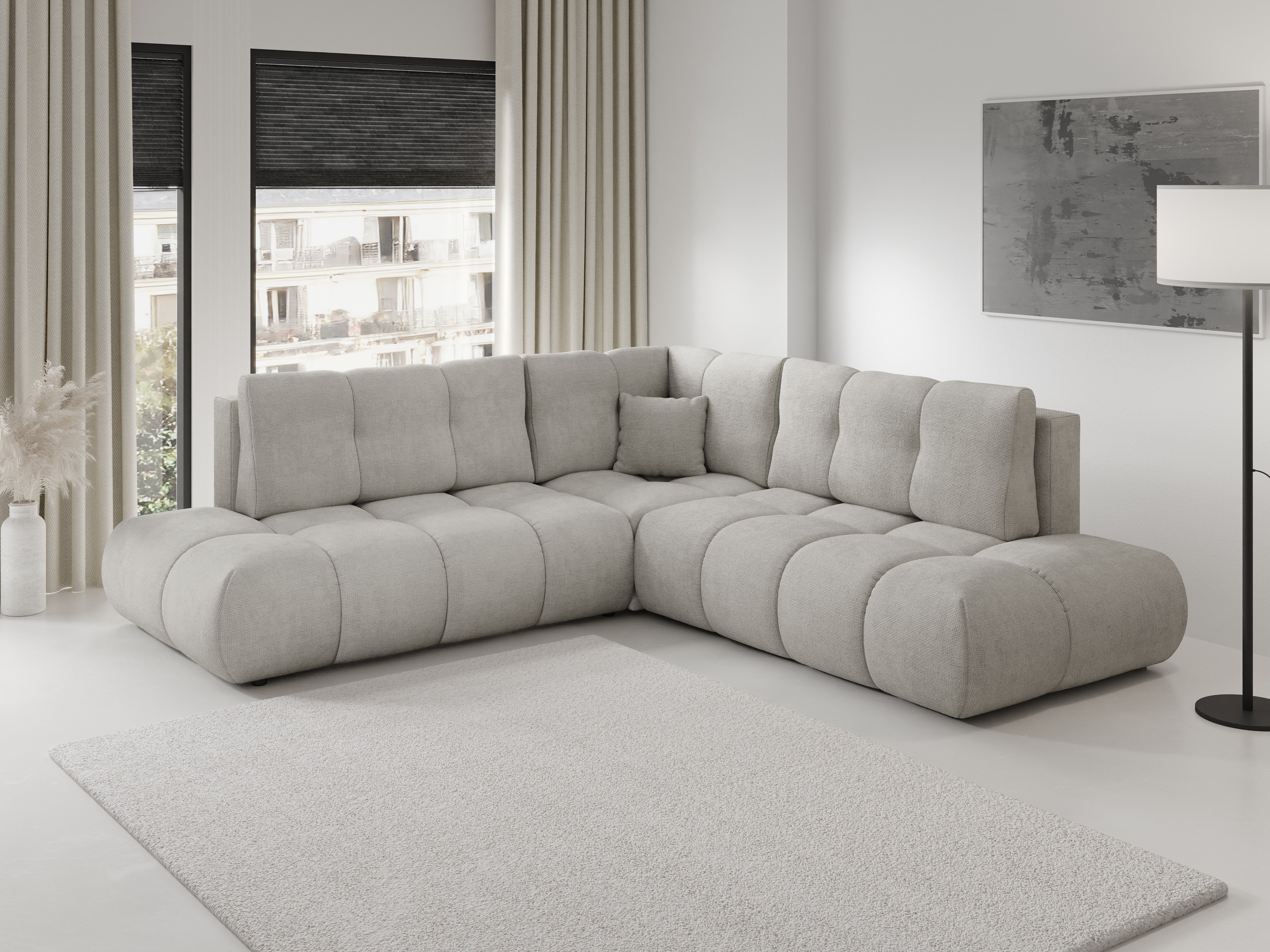 Når du ser på sofaen forfra, vil den forlængede del af venstre-varianten være på din venstre side. Den valgte hjørnevariant bør forbedre rummets flow og gøre det let at bevæge sig rundt i rummet.