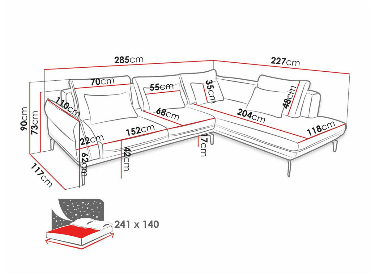 Længde på soveområde: