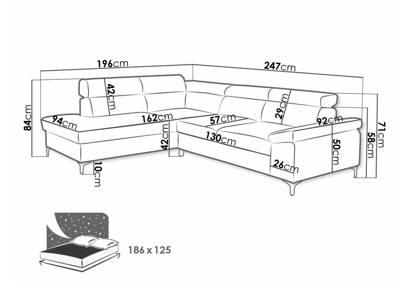 71 cm  247 cm  196 cm