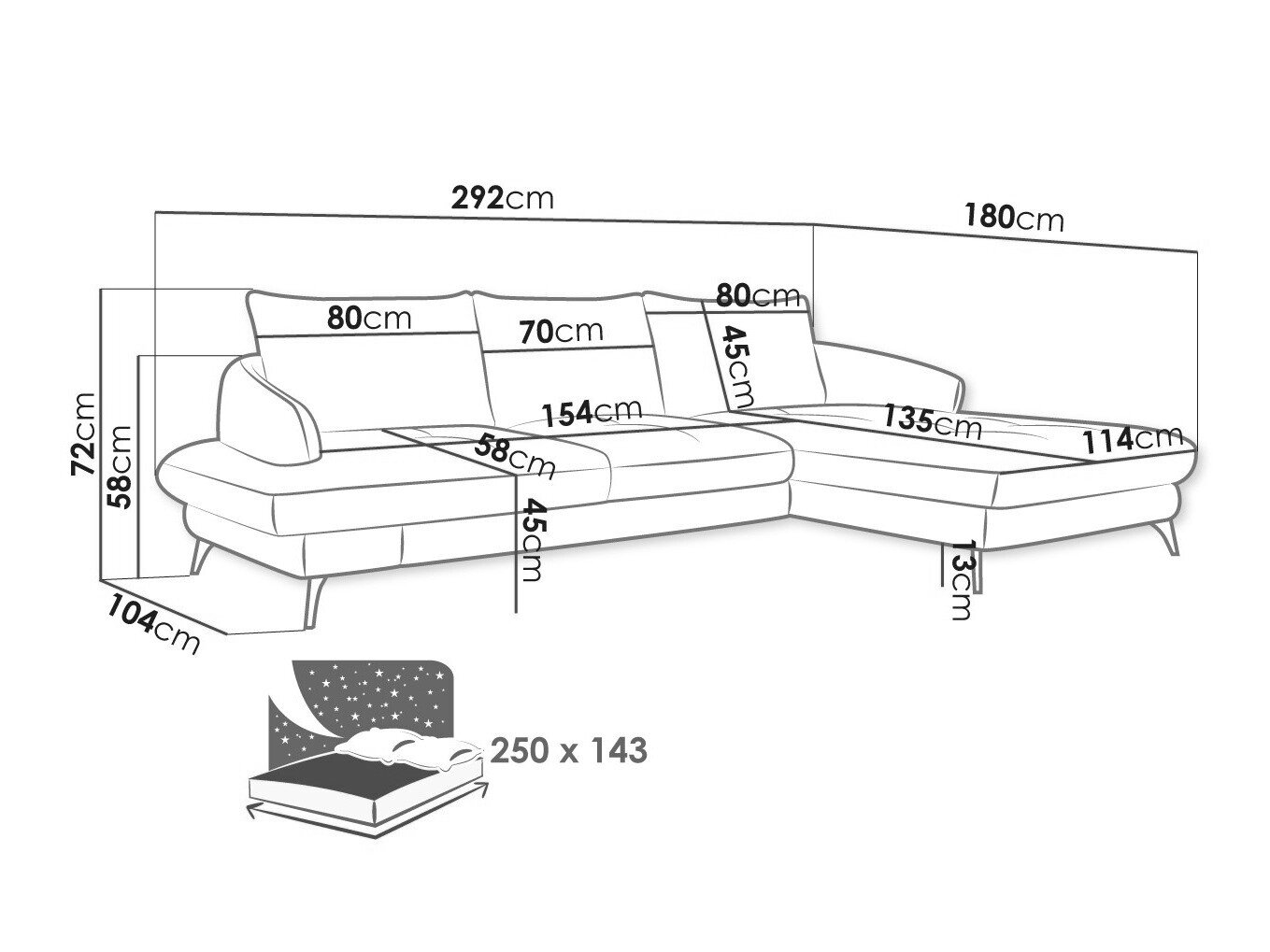 Længde på soveområde: