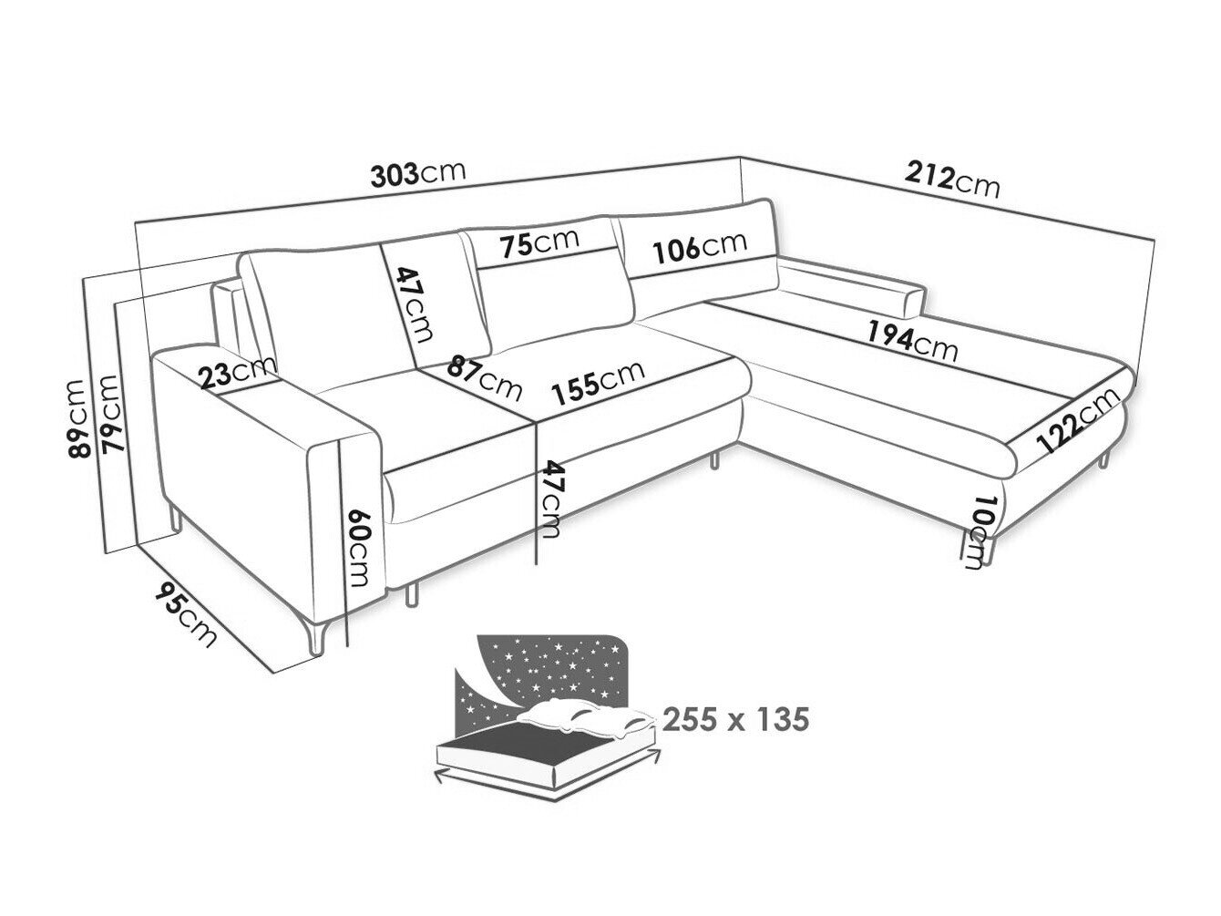 Sengekasse dimensioner: