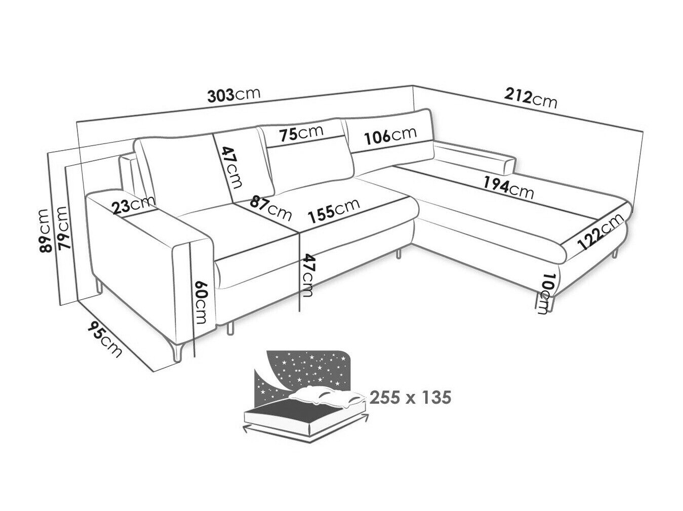 Sengekasse dimensioner: