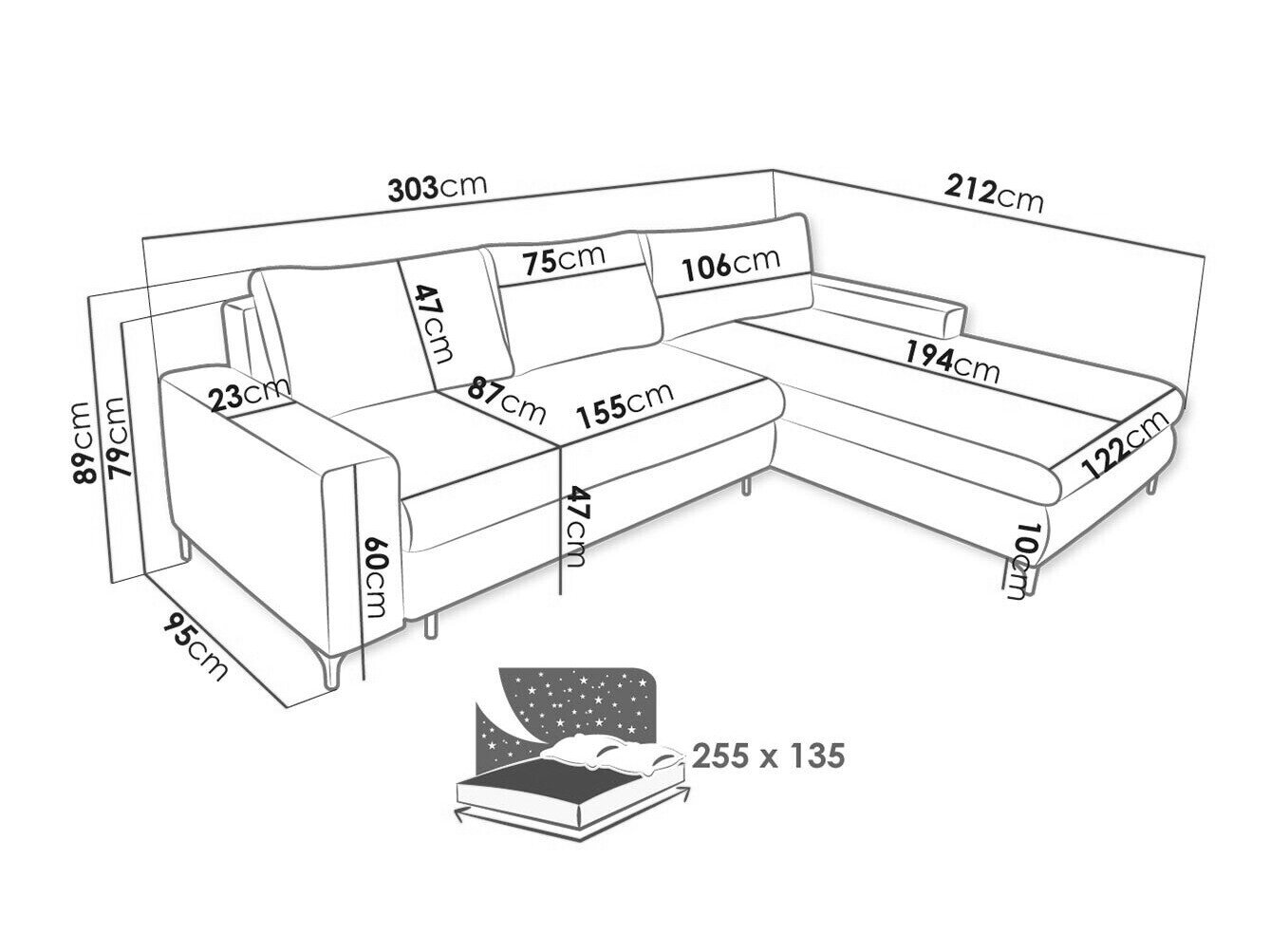 Sengekasse dimensioner: