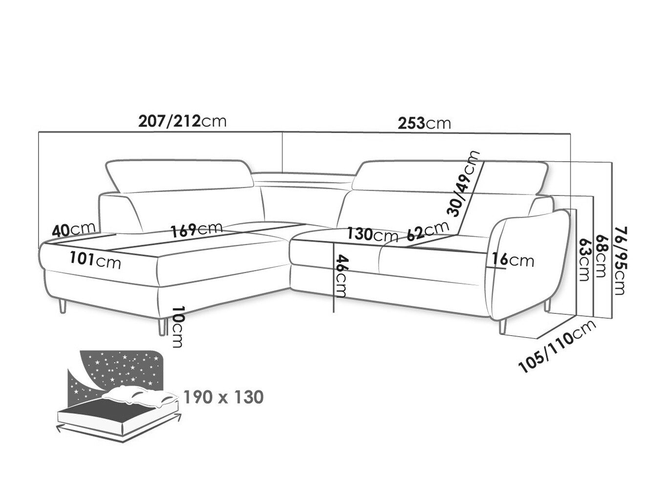 Sengekasse dimensioner: