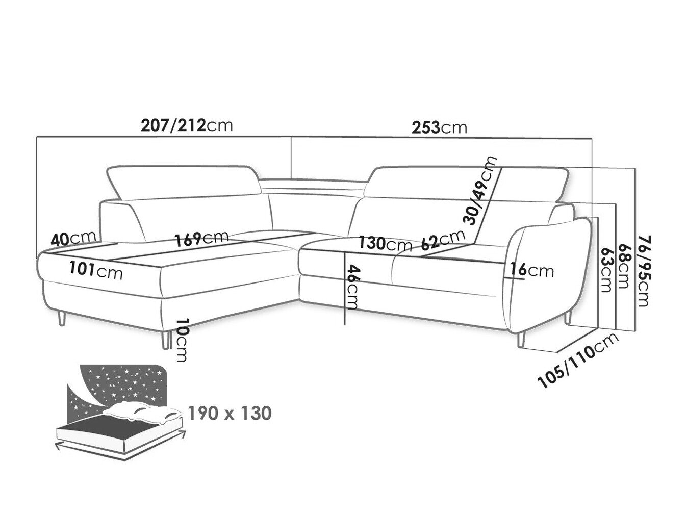 Sengekasse dimensioner: