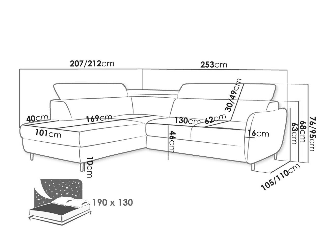 Sengekasse dimensioner:
