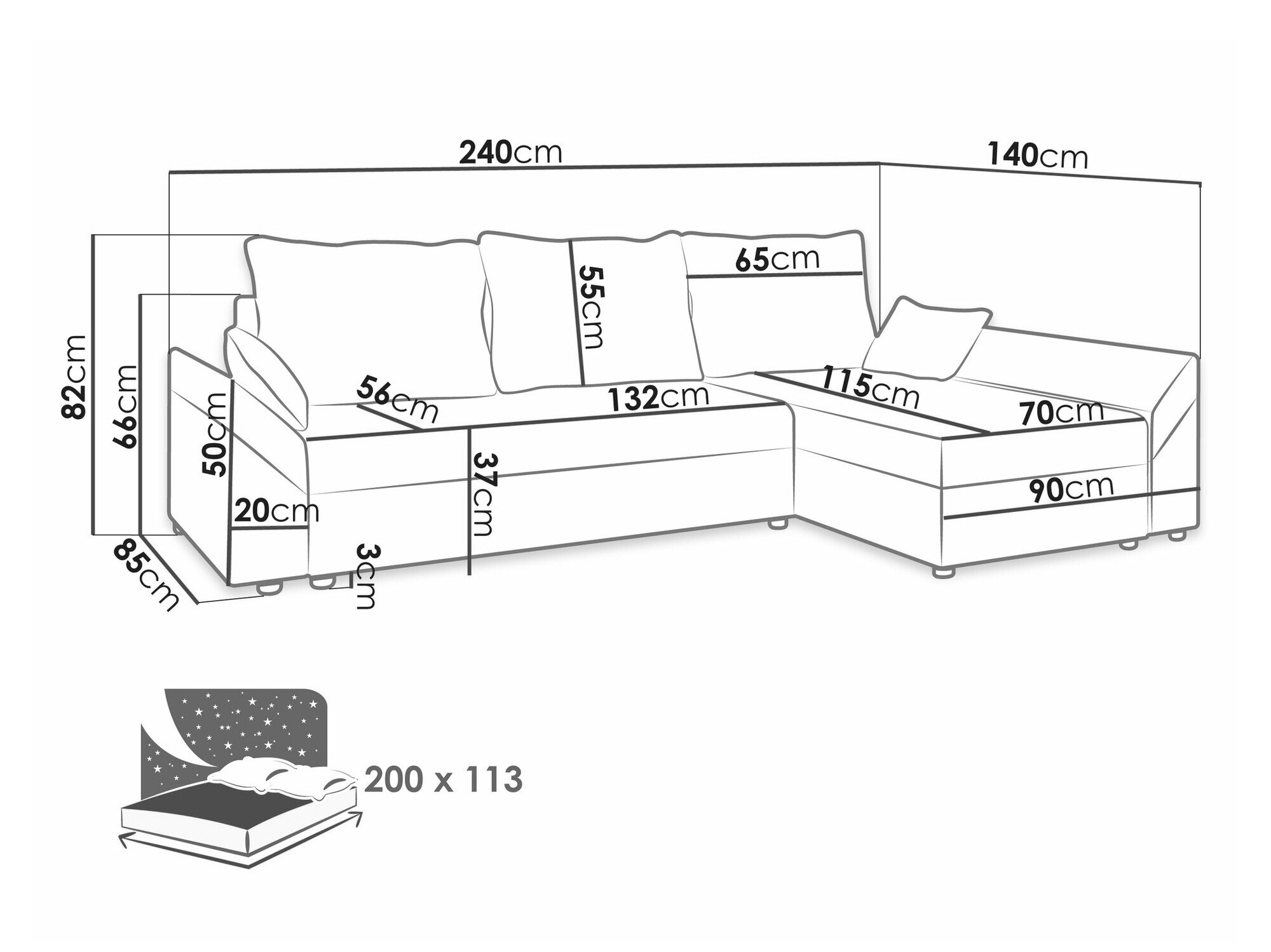 Sengekasse dimensioner: