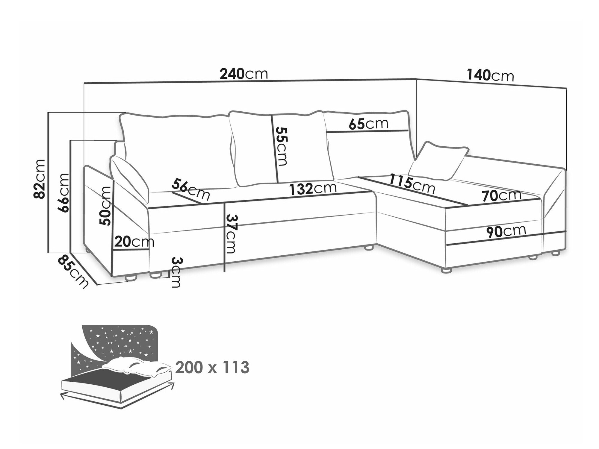 Sengekasse dimensioner: