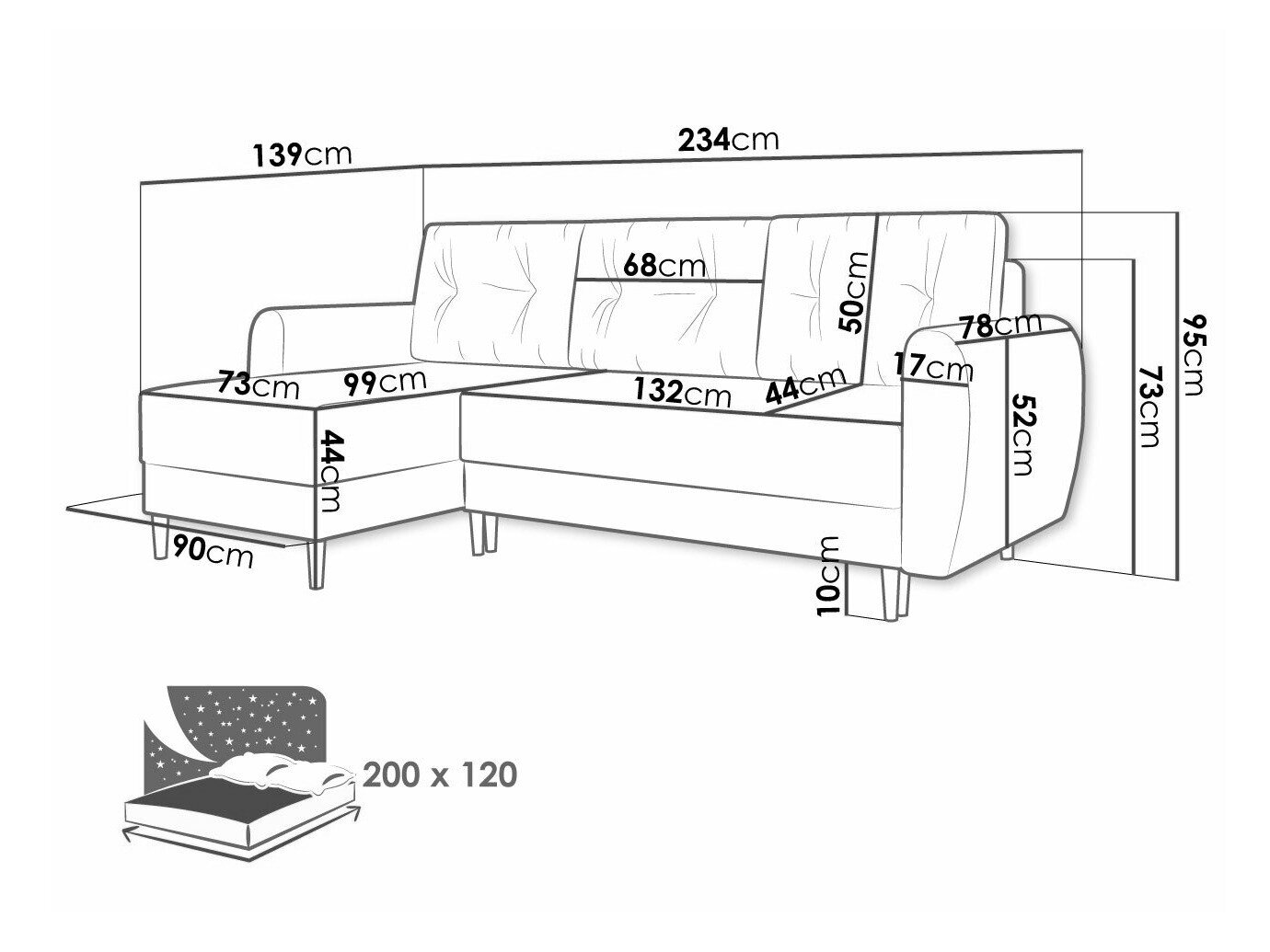 Sengekasse dimensioner: