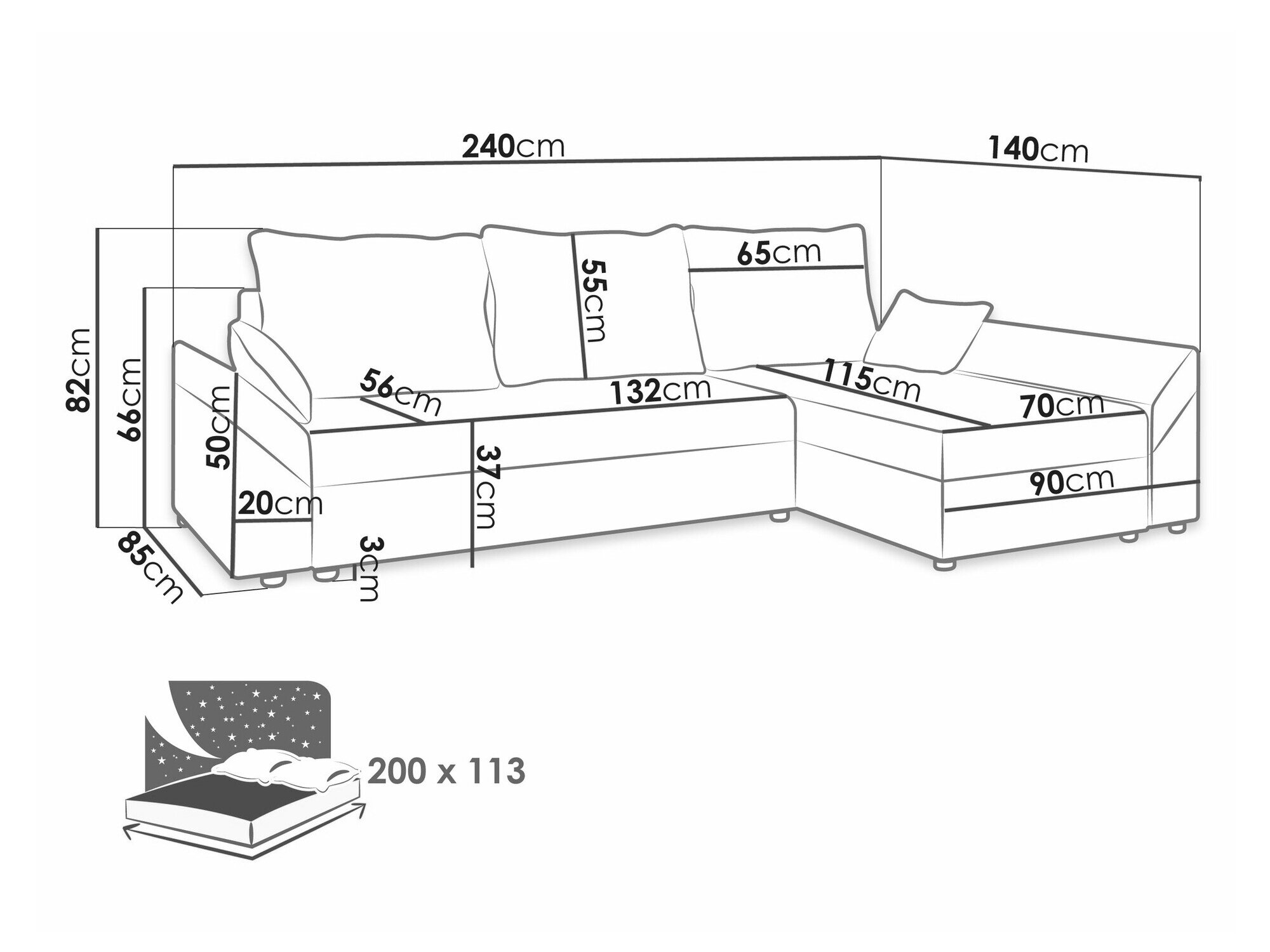 Længde på soveområde: