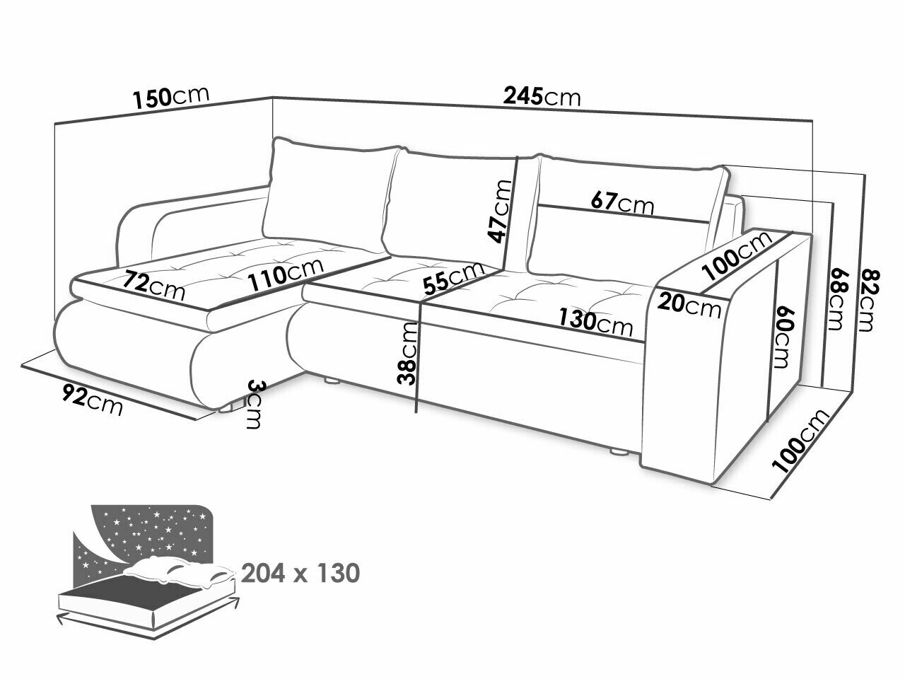 Sengekasse dimensioner: