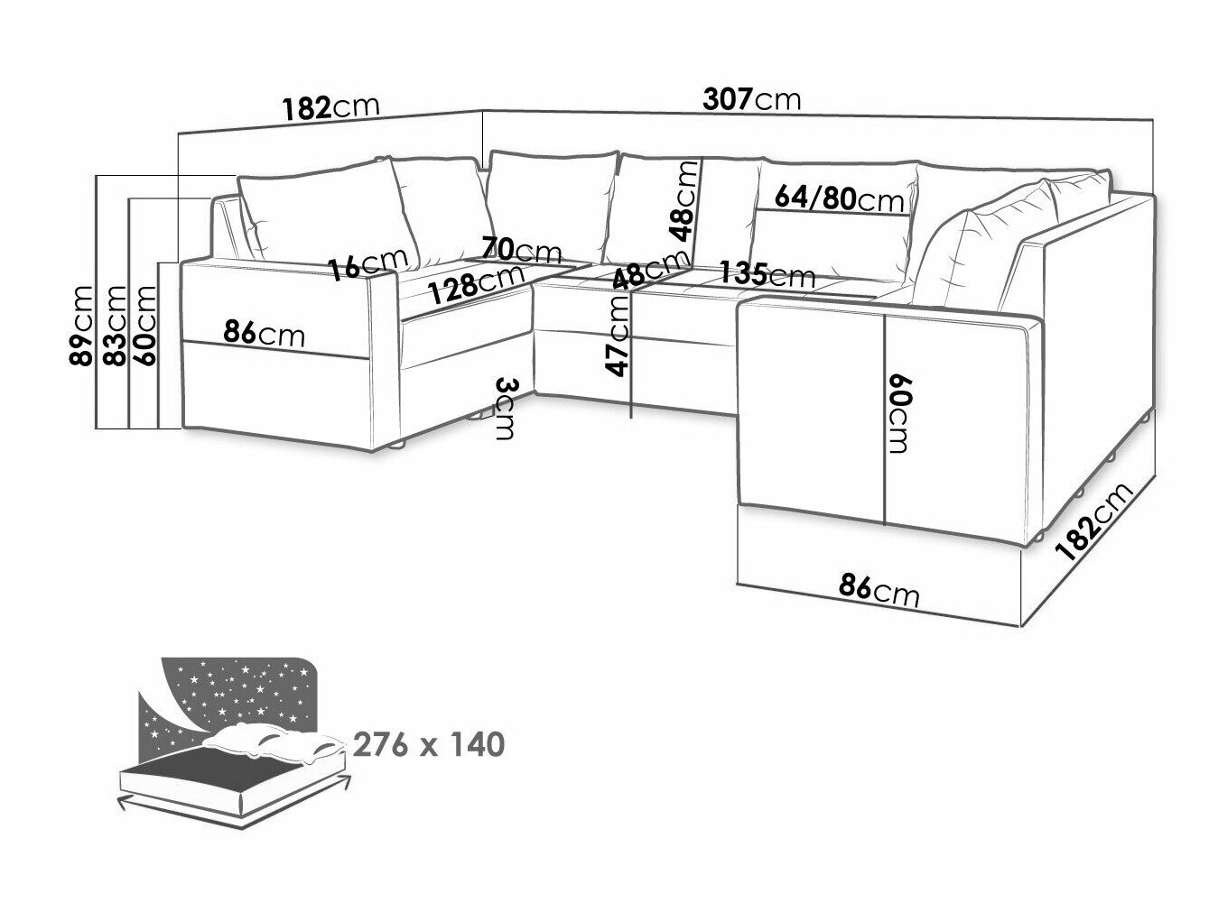 Længde på soveområde: