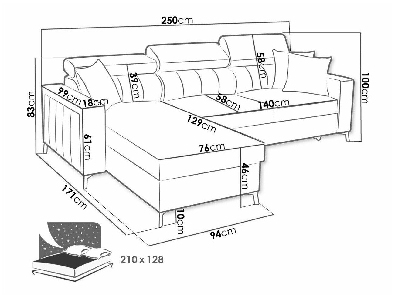 Sengekasse dimensioner:
