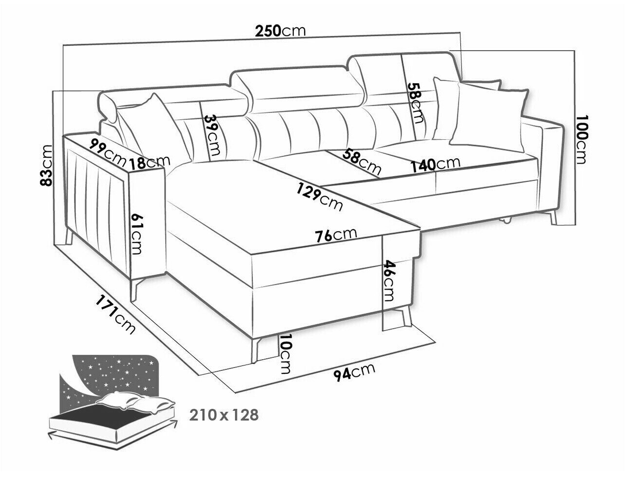 Sengekasse dimensioner: