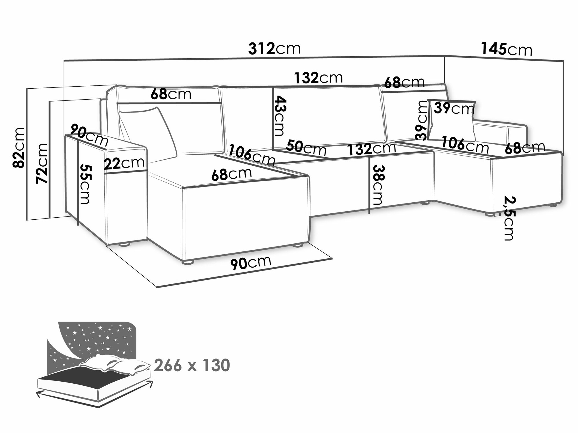 Sengekasse dimensioner: