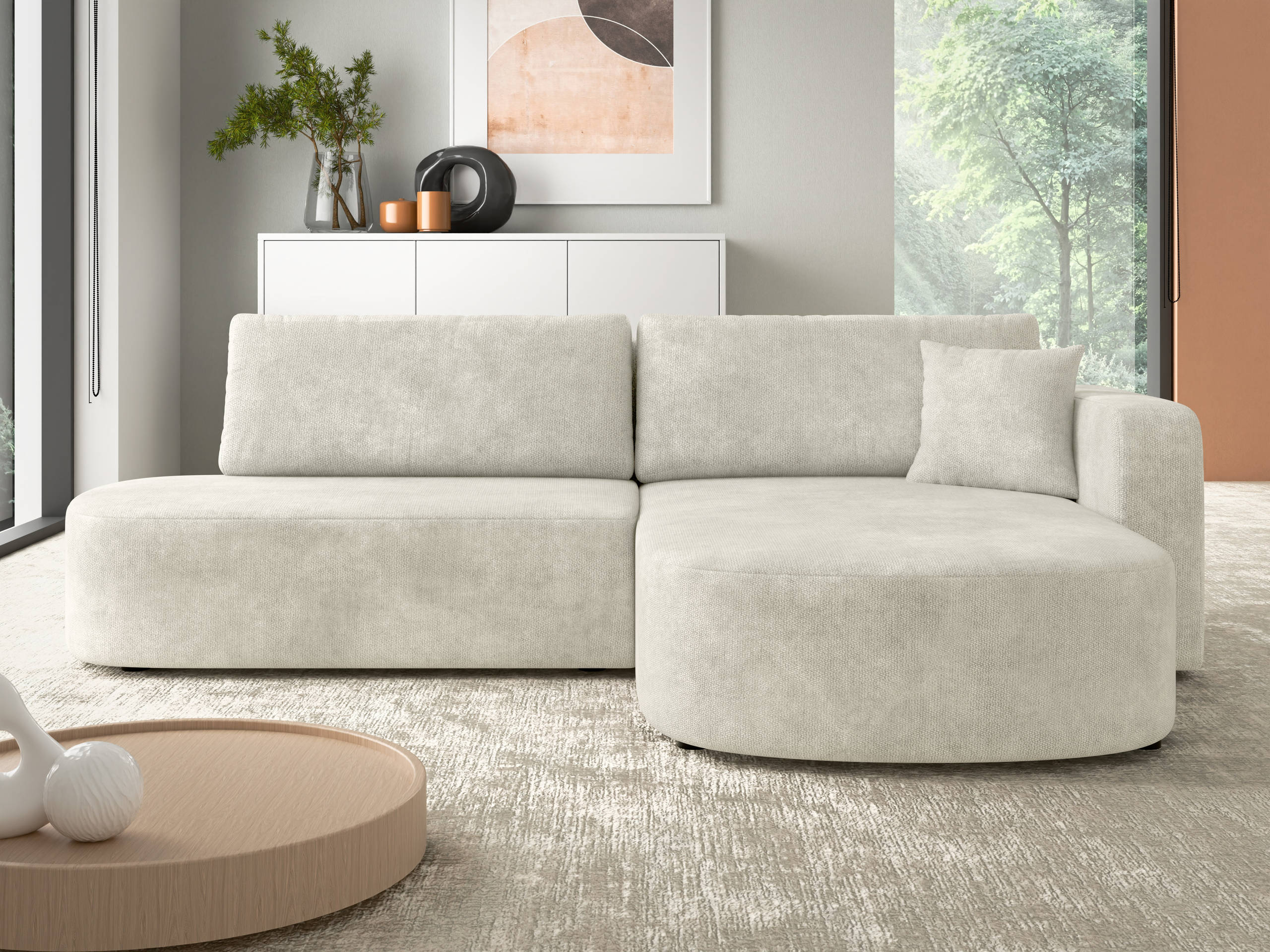 Når du ser på sofaen forfra, vil den forlængede del af højre-varianten være på din højre side. Den valgte hjørnevariant bør forbedre rummets flow og gøre det let at bevæge sig rundt i rummet.